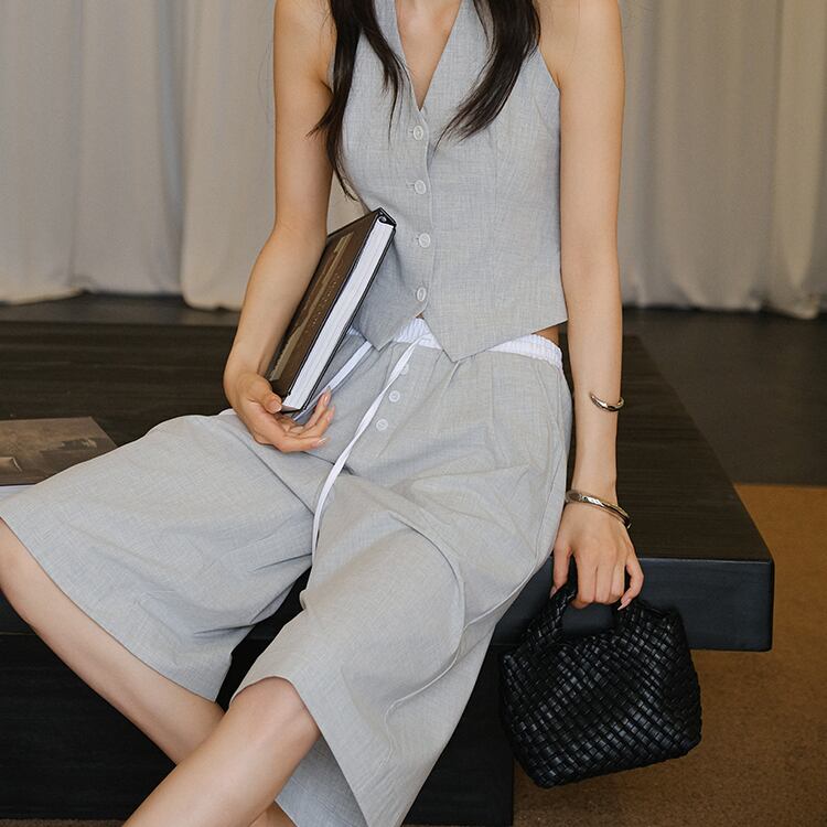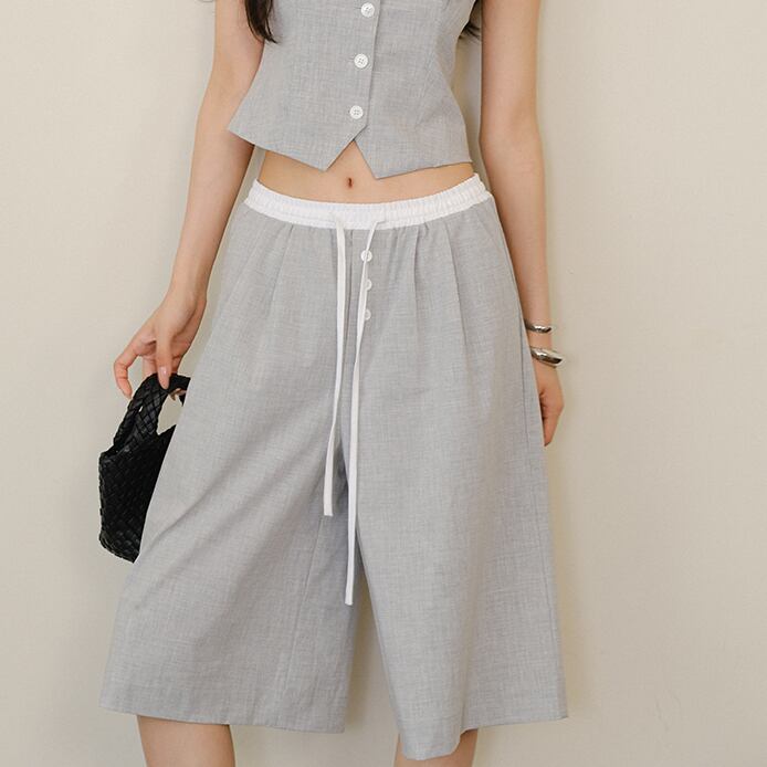 ウエストゴムで楽ちん、ドローストリングでシルエット調整も自由自在なバミューダパンツ◎ワイドレッグデザインでリラックス感がありつつ、脚をすっきりと見せてくれます。デイリーユースはもちろん、様々なトップスと合わせやすく、着回し力抜群です!