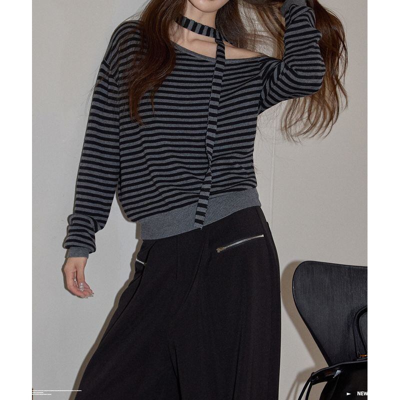 こなれた雰囲気漂うボーダー柄ニットワンピース♡