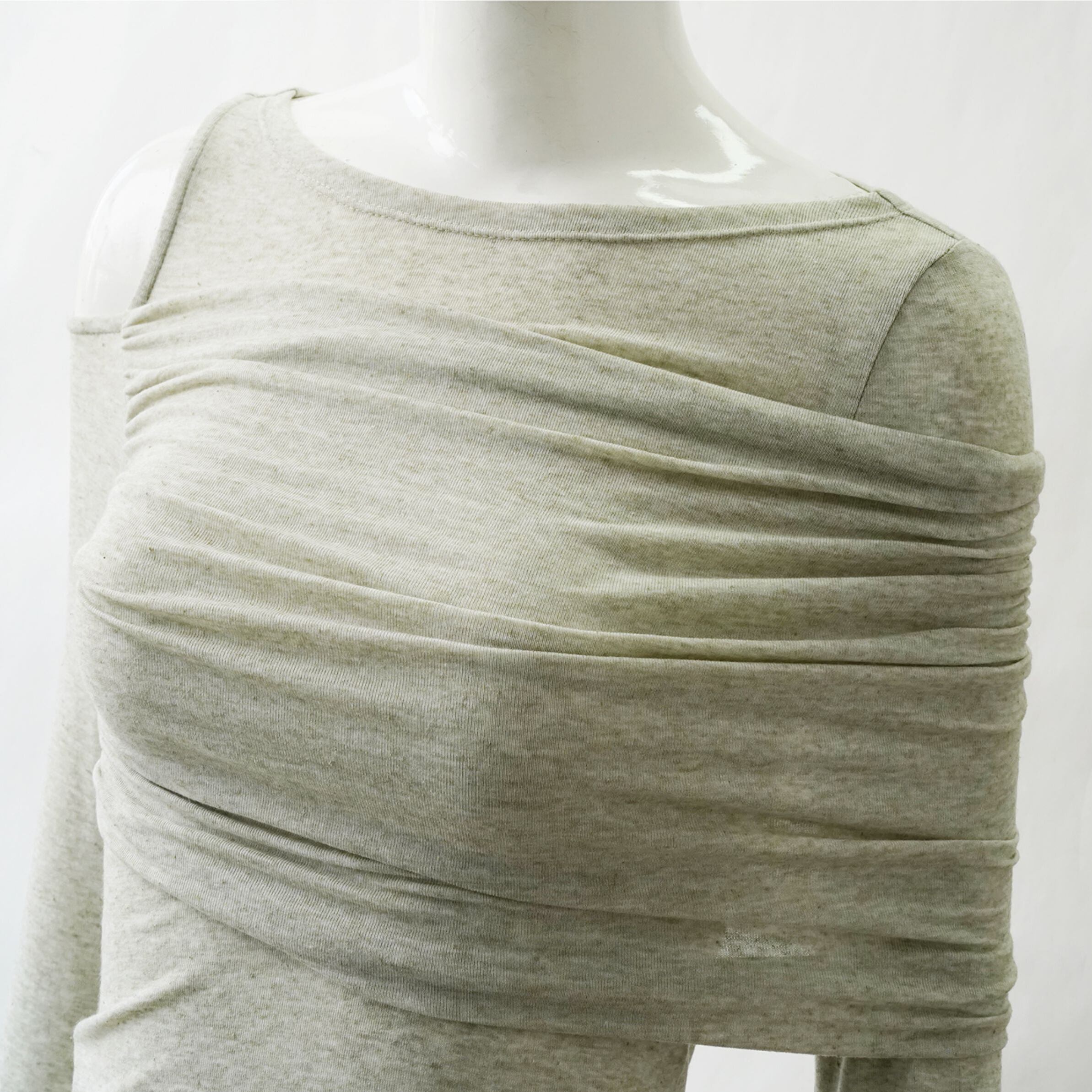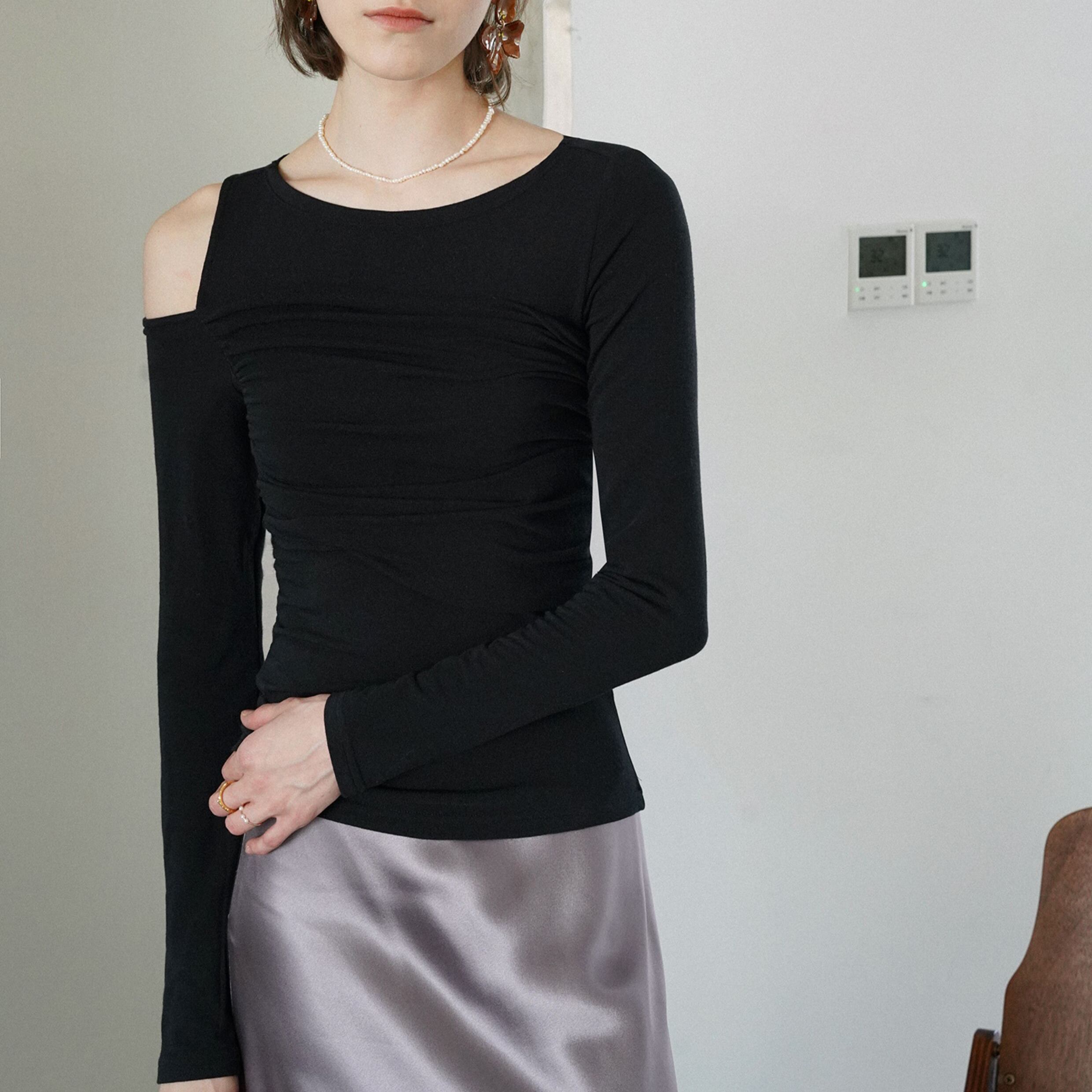 大きく折り返しを付けたようなデザインが映える長袖トップス。