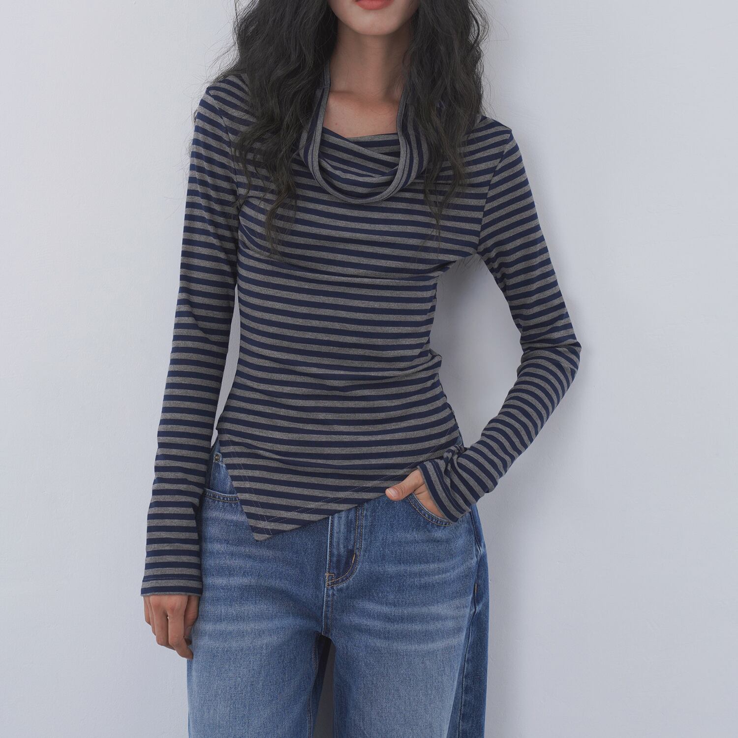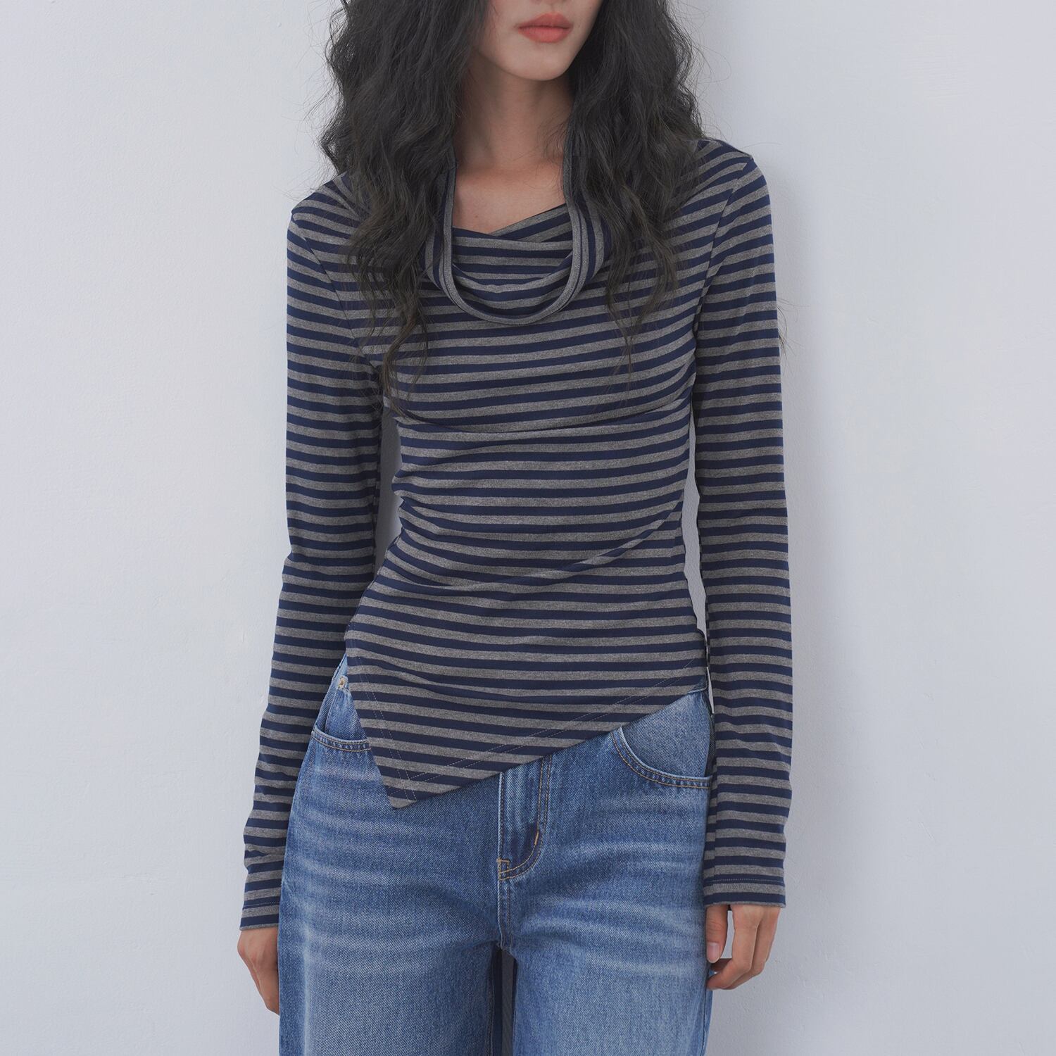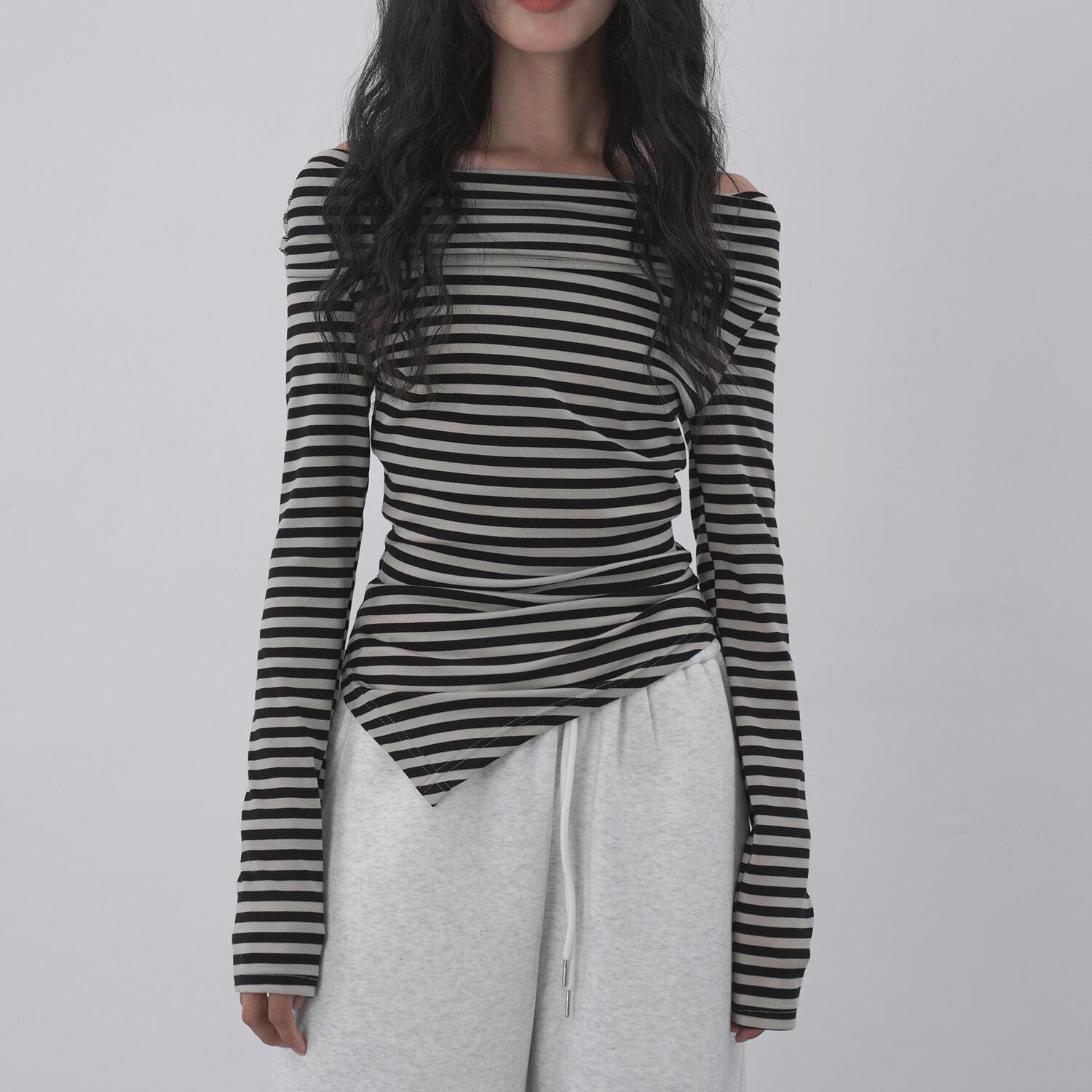 アシンメトリーボーダートップス 0048