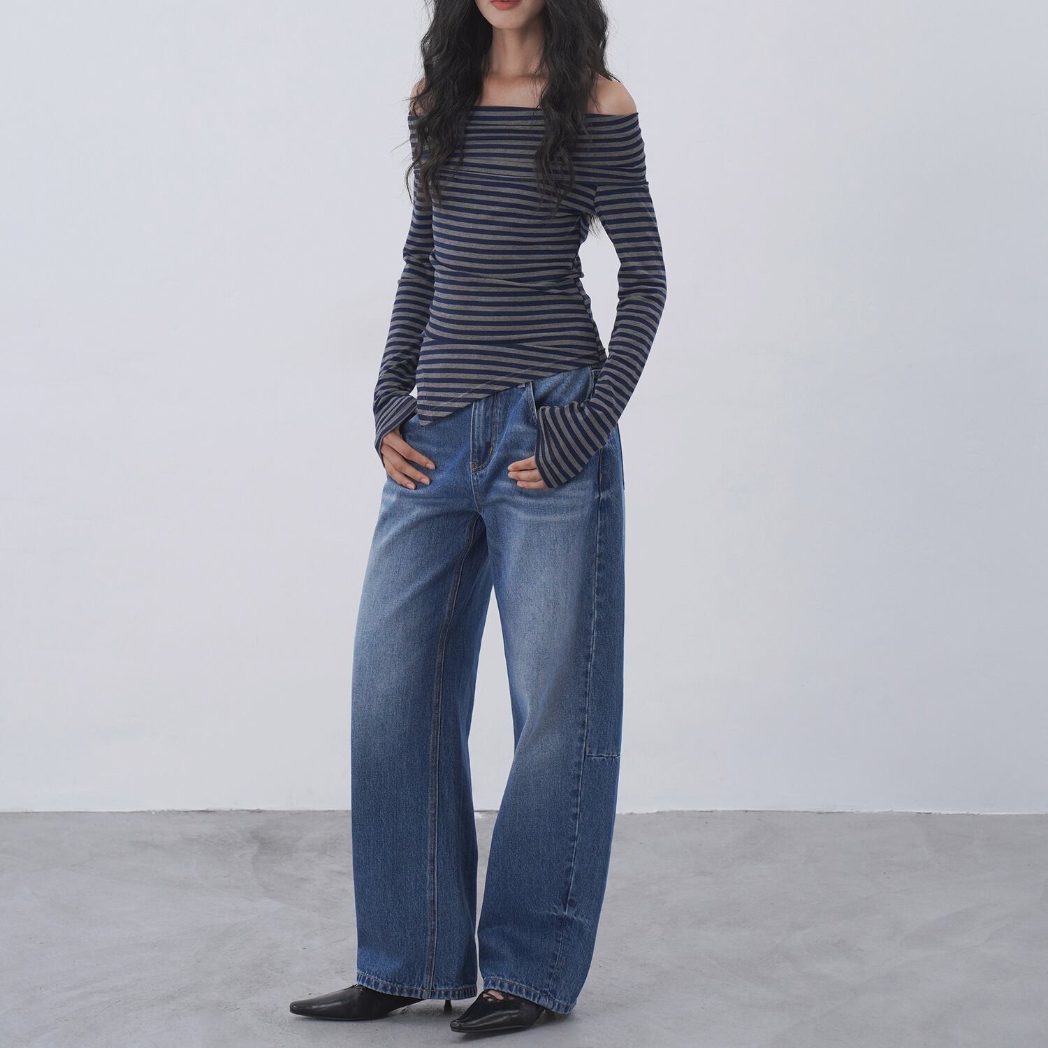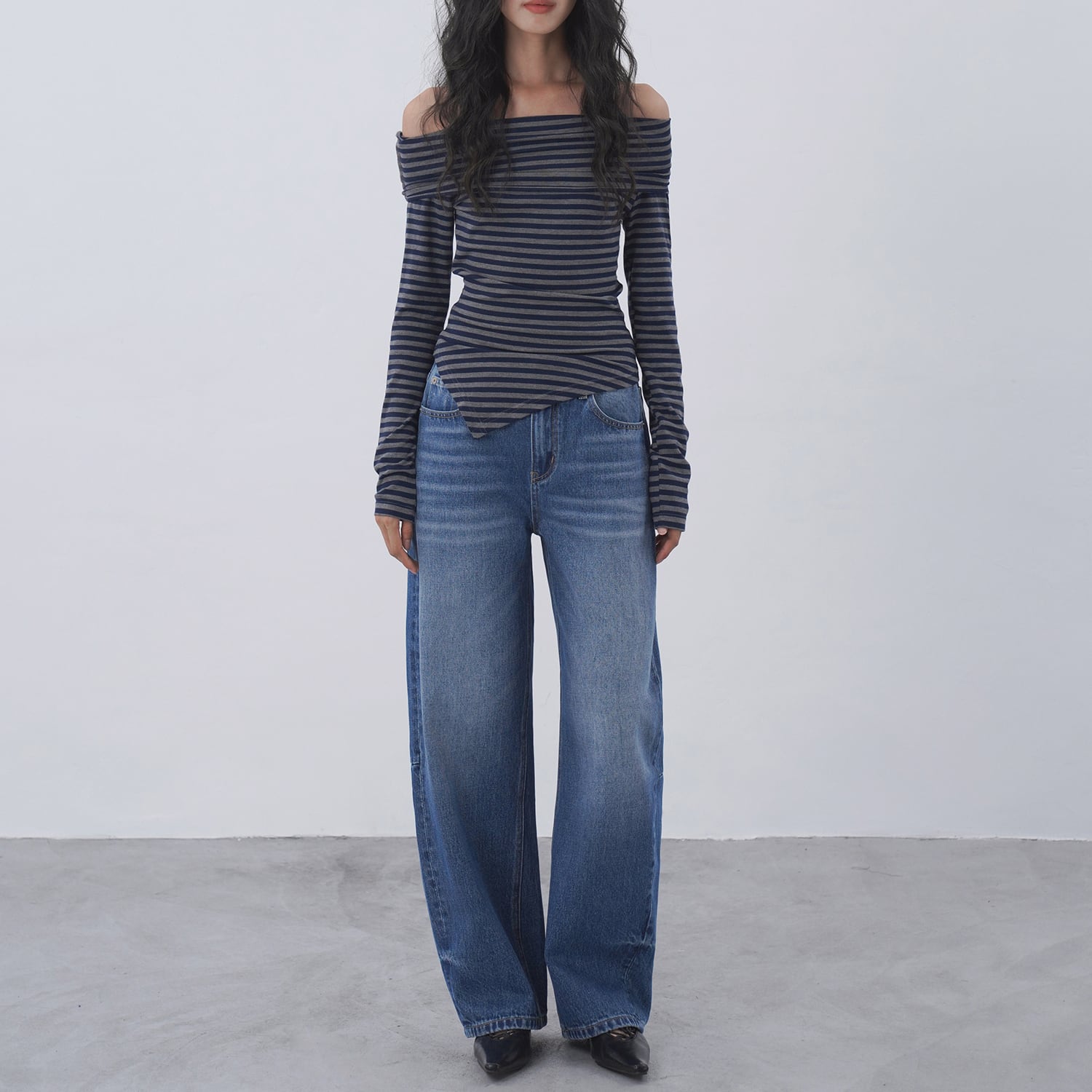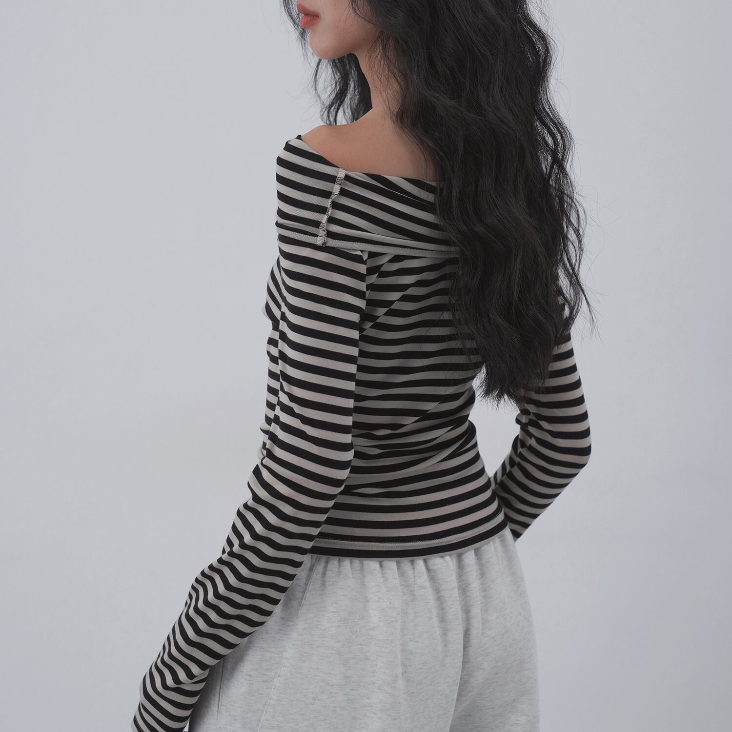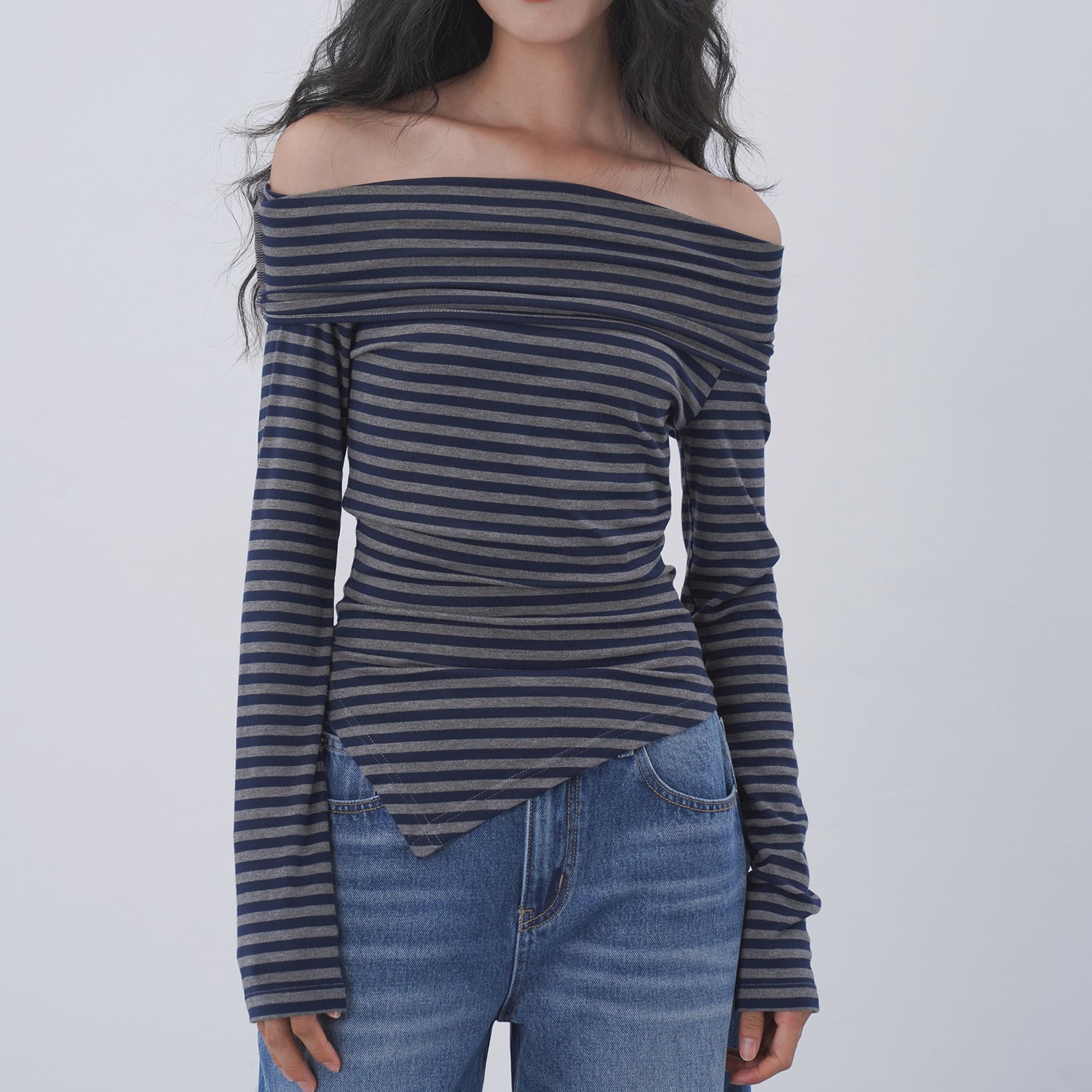 アシンメトリーボーダートップス 0048