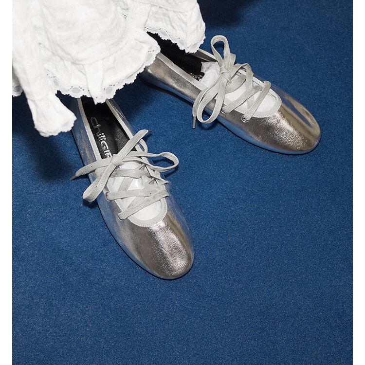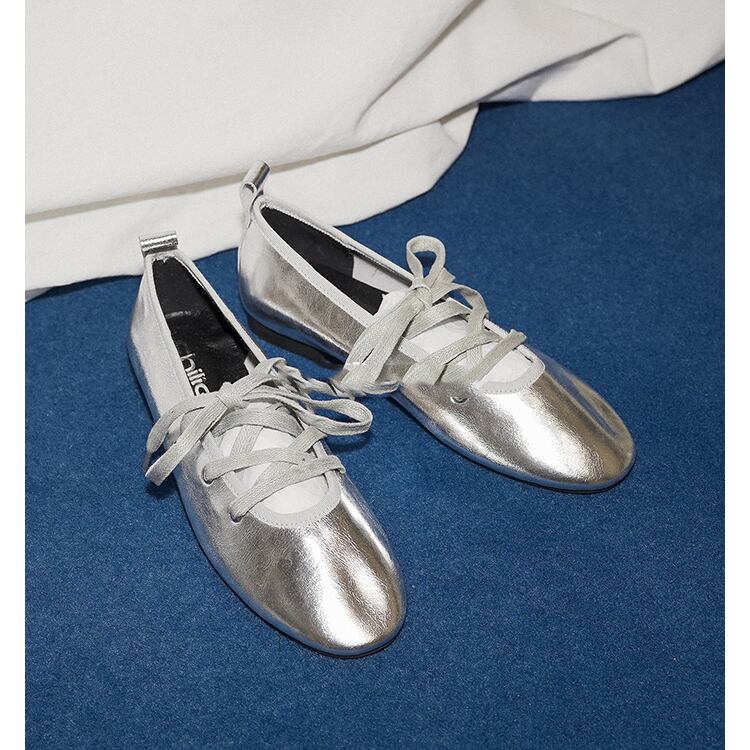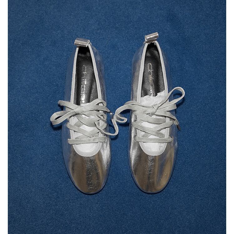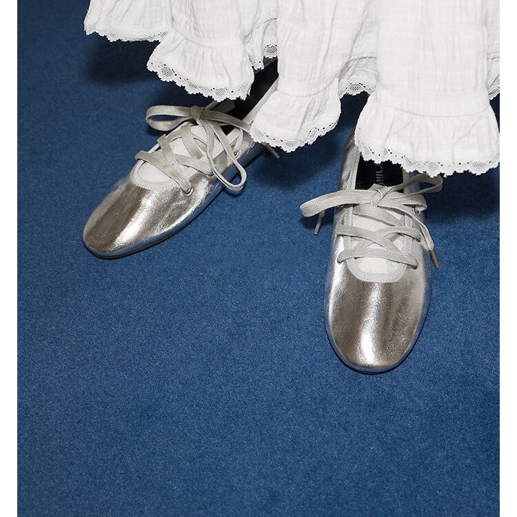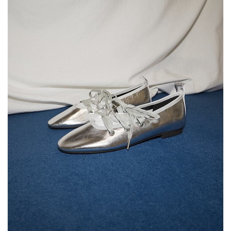レースアップフラットパンプス 0066
