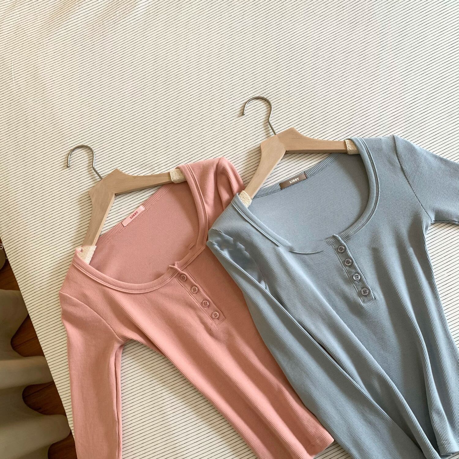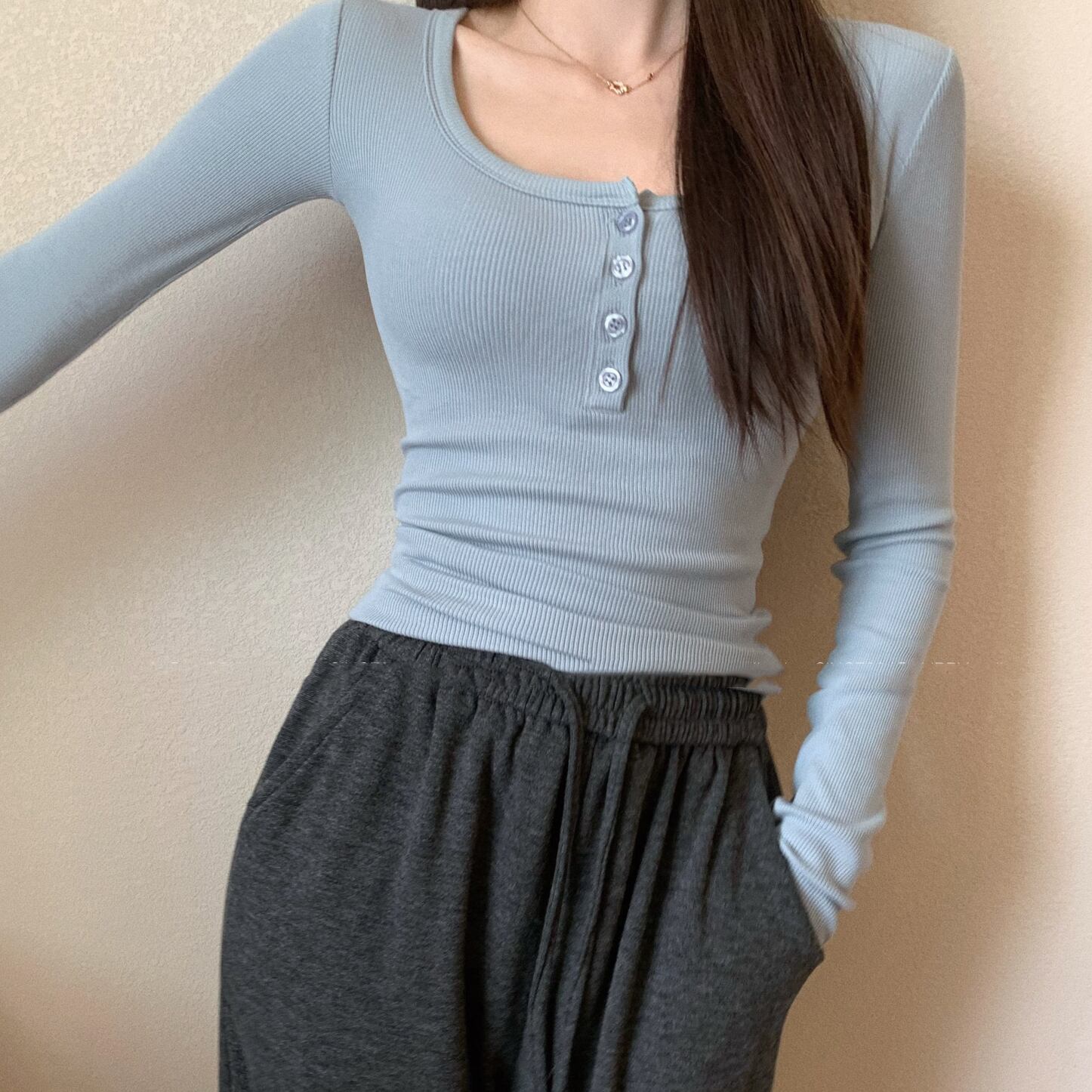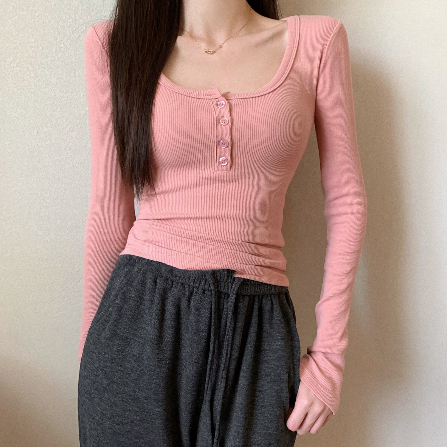 ベーシックなヘンリーネックのカットソー。