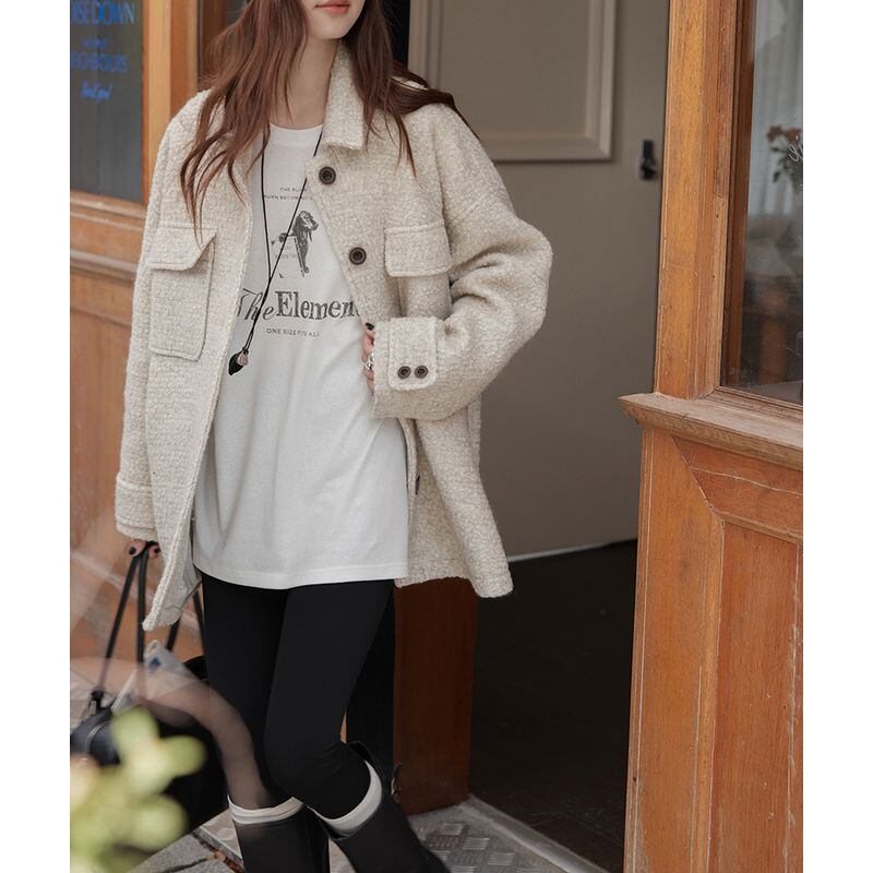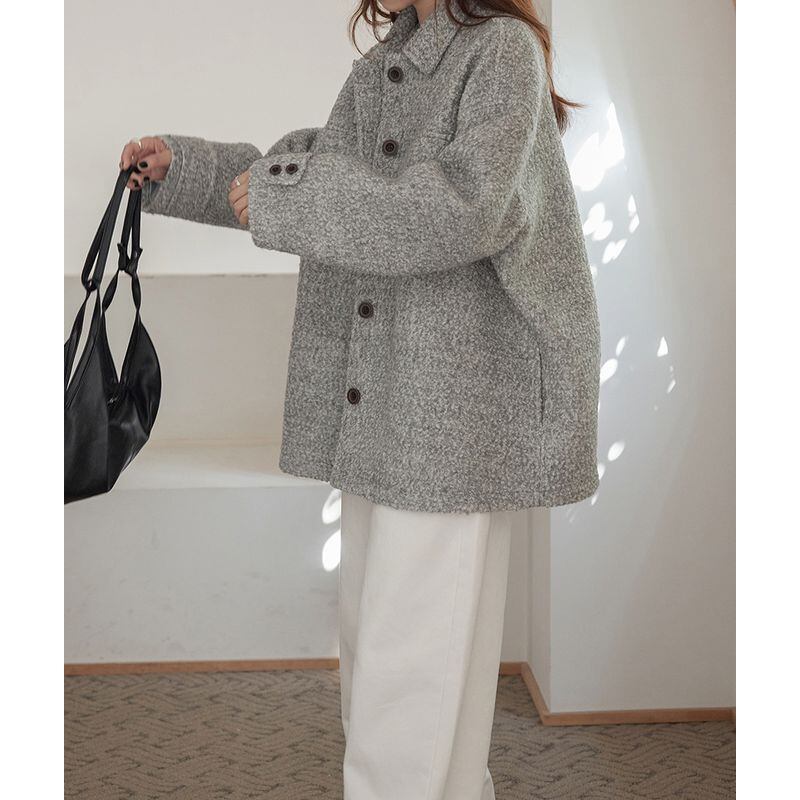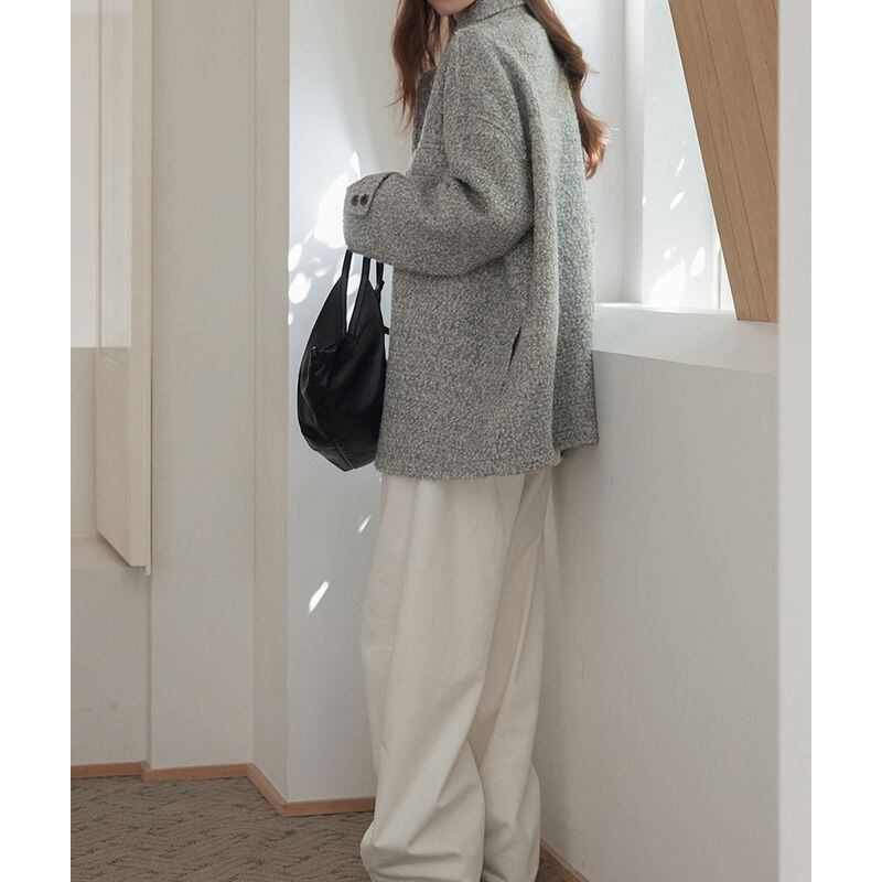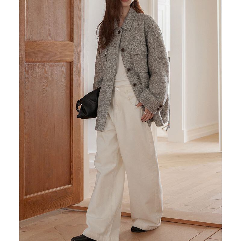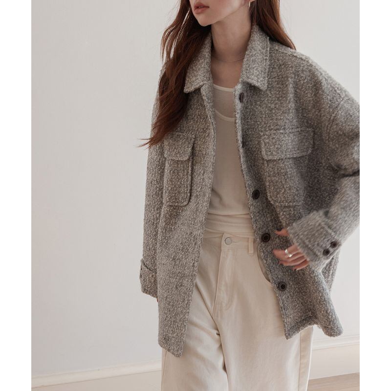 カジュアルながらも上品な印象を与えるウール混ジャケット。