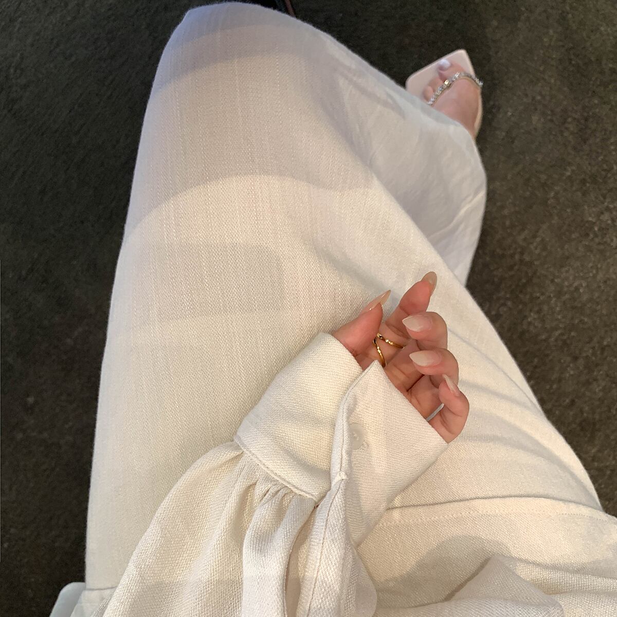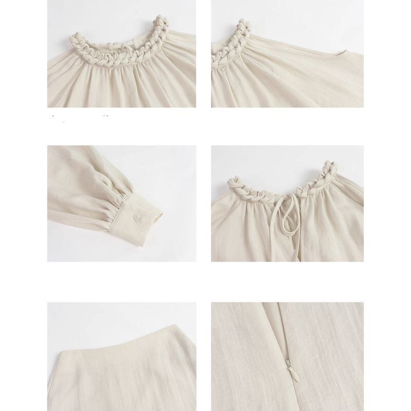 ネックラインに施されたコードステッチが、ナチュラルながらも印象的なアクセントに。同じ素材のIラインのスカートもセットなのでコーデがすぐ完成します。もちろん別々で着用可能!