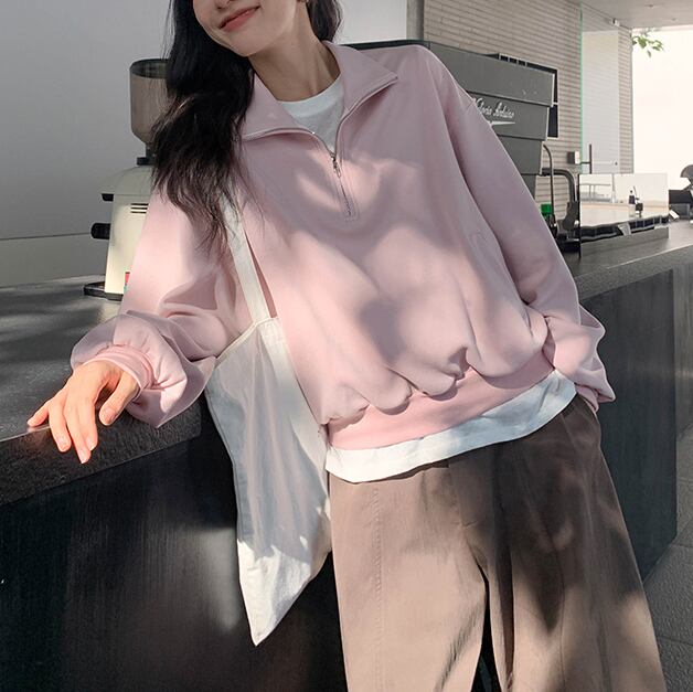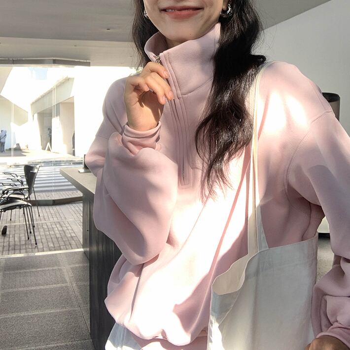 ジップの開け具合で、インナーとのレイヤードを楽しめます。
