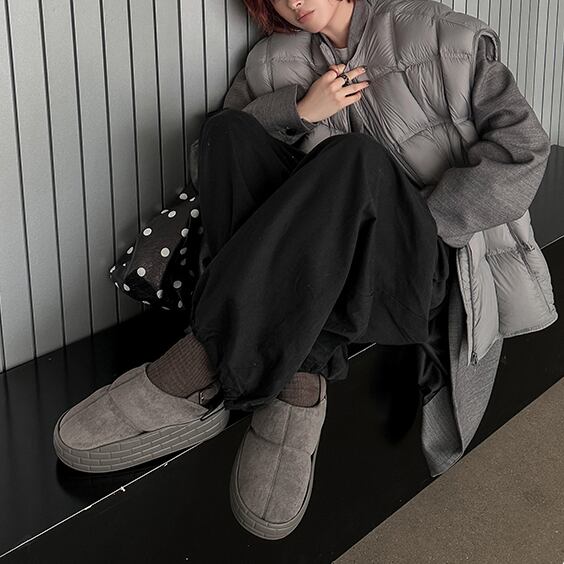 キルティングデザインのバックバンドミュールです。レンガを重ねたようなフォルムの厚底ソールで、さりげなくスタイルアップを後押し。アクティブに動けて暖かい、寒い日に活躍するアイテムです。