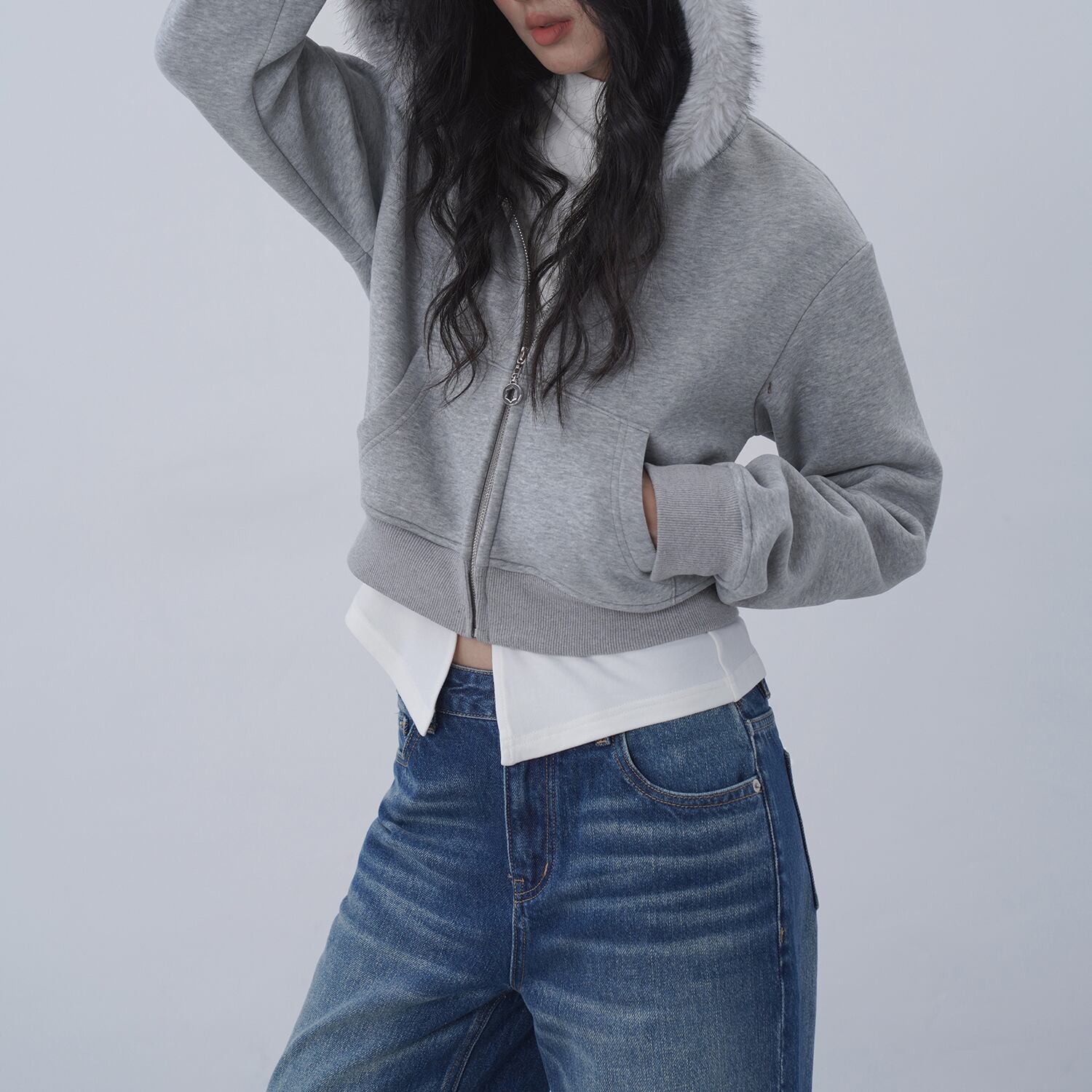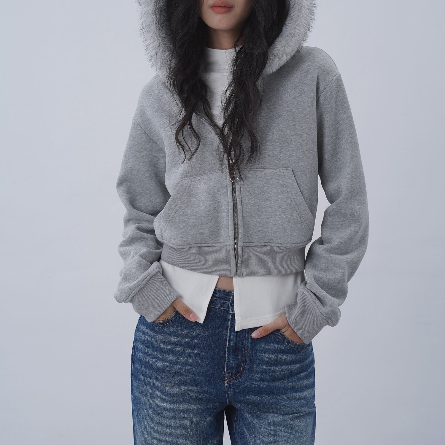 人気のショート丈パーカーは、どんなボトムスとも相性抜群。
