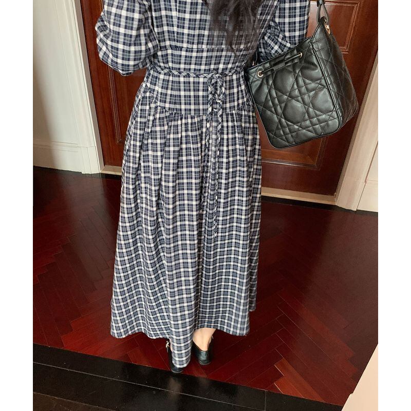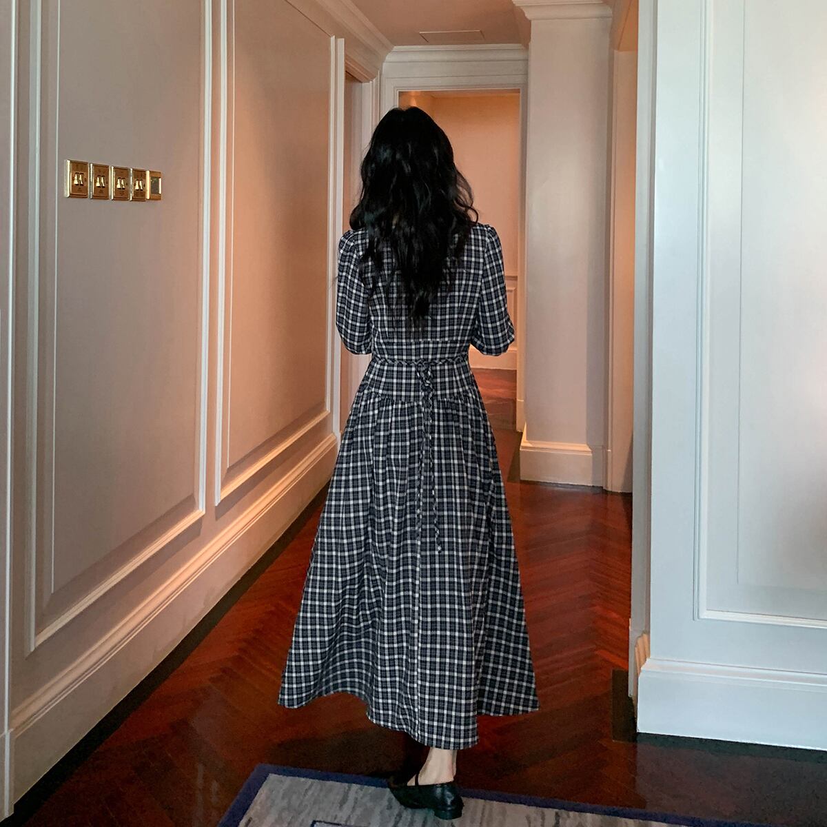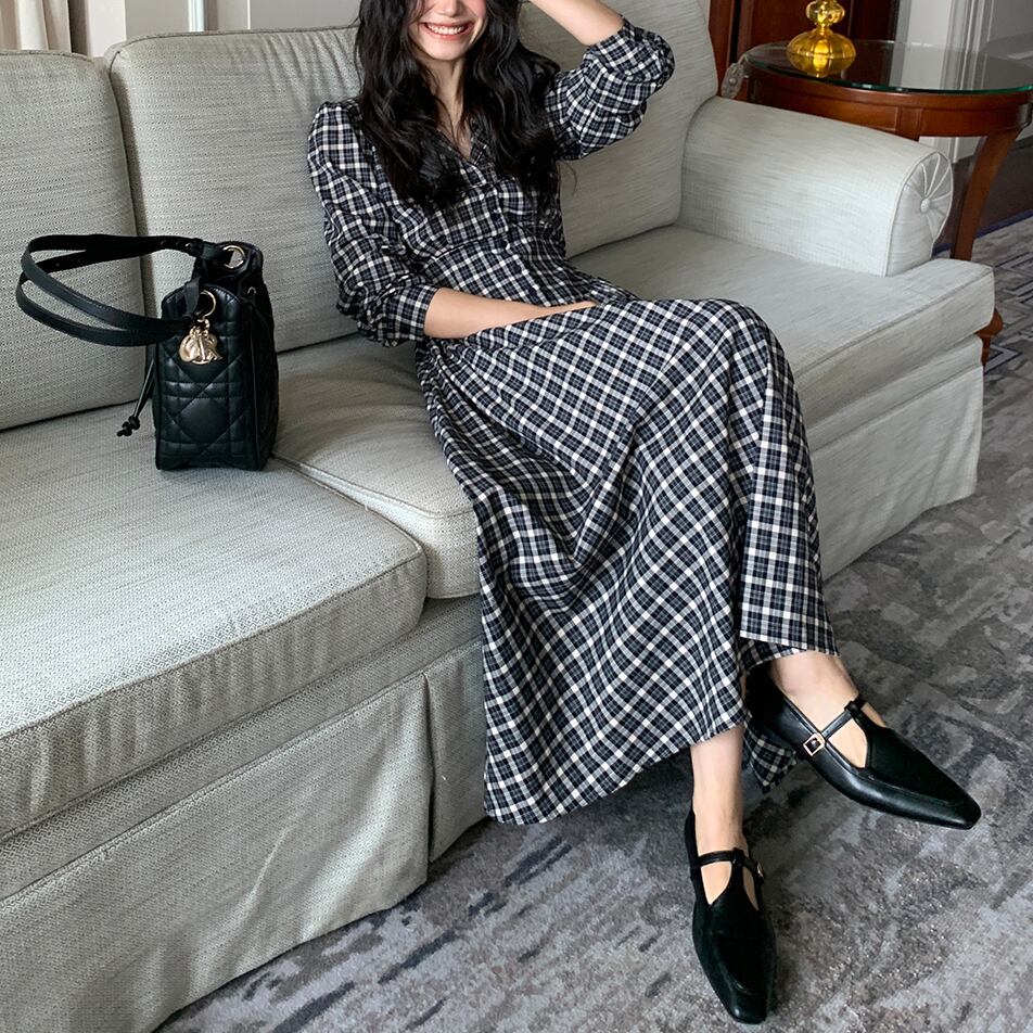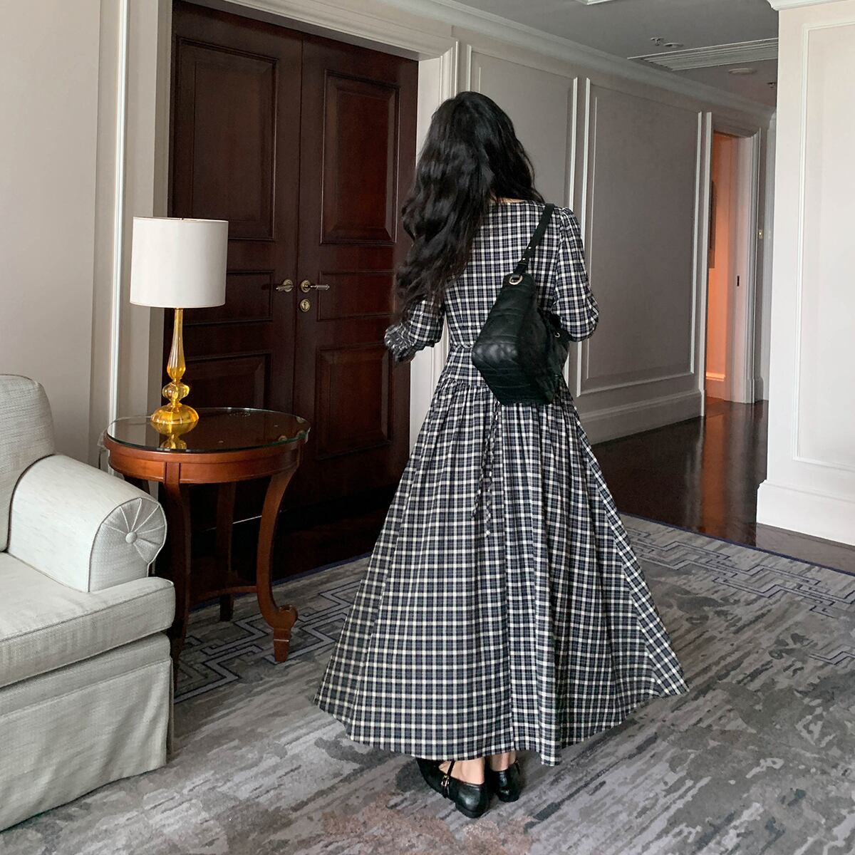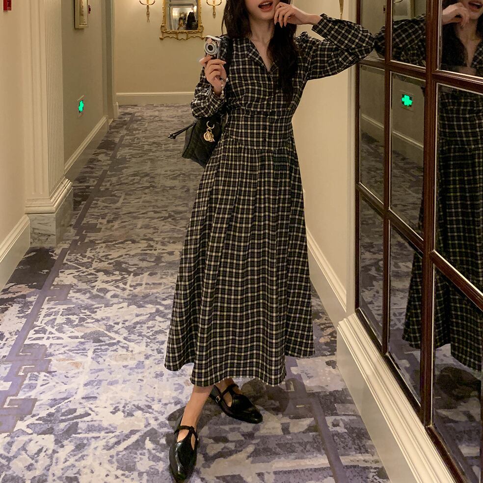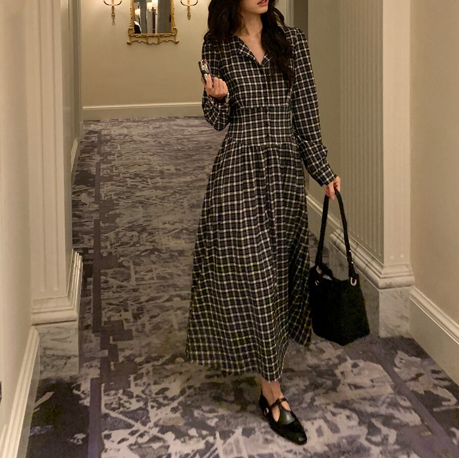 レトロな雰囲気漂う、チェック柄のシャツワンピース。