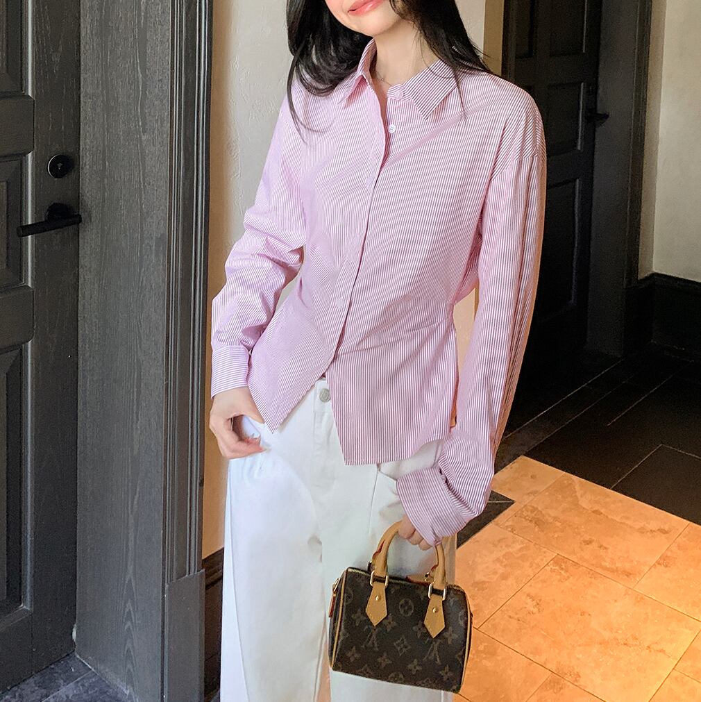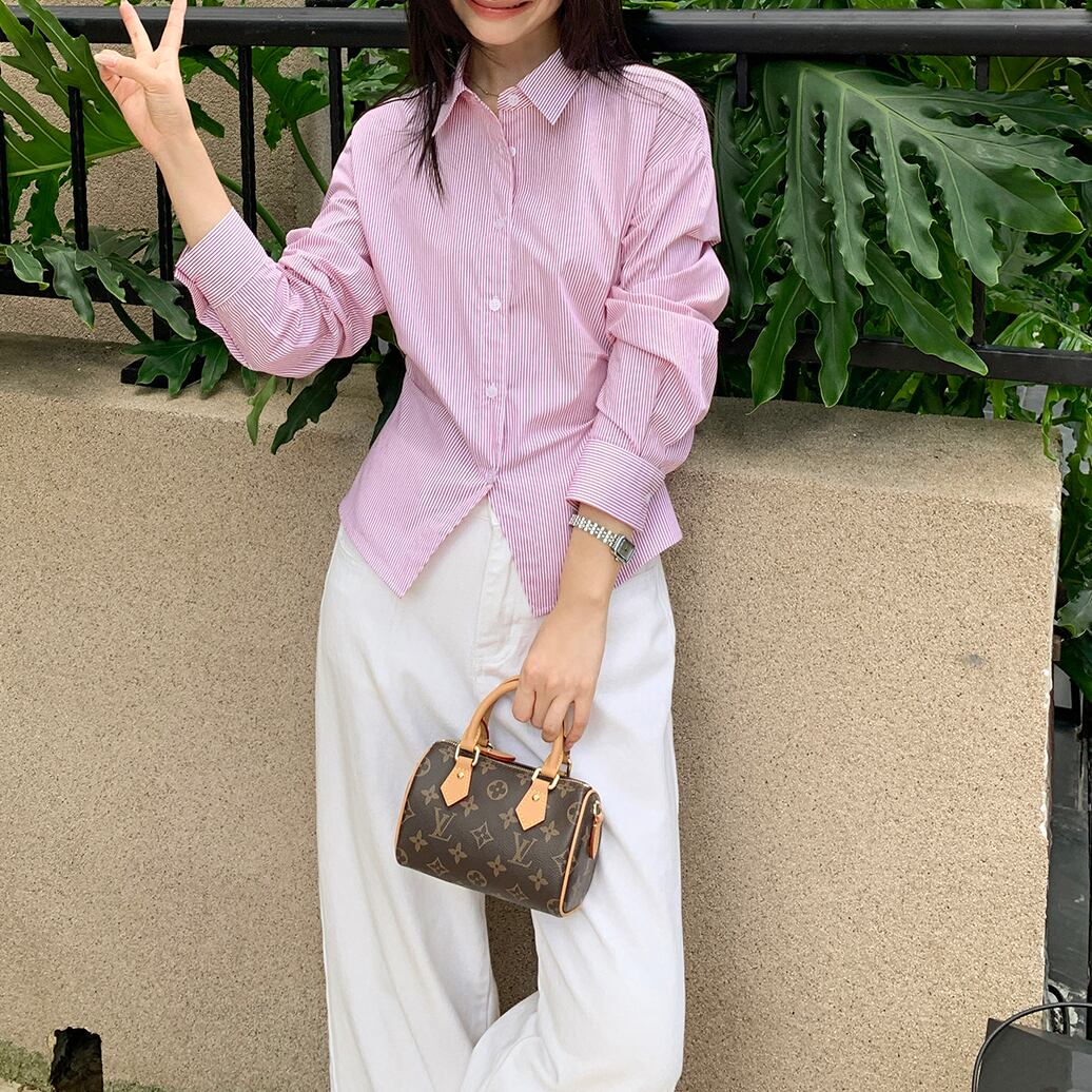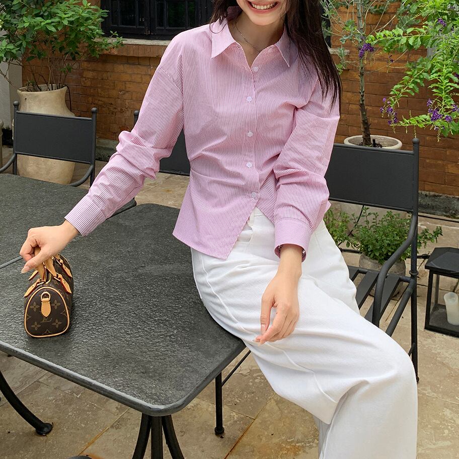 カジュアルにもきれいめにも着こなせるストライプシャツ。