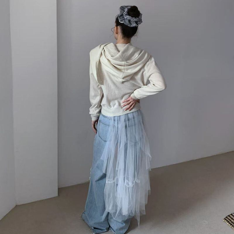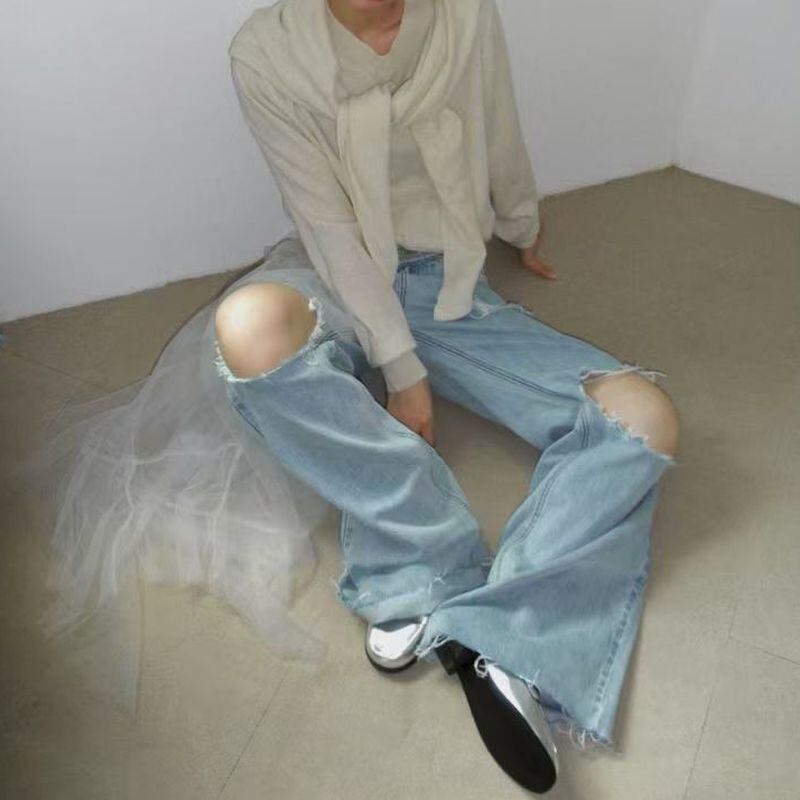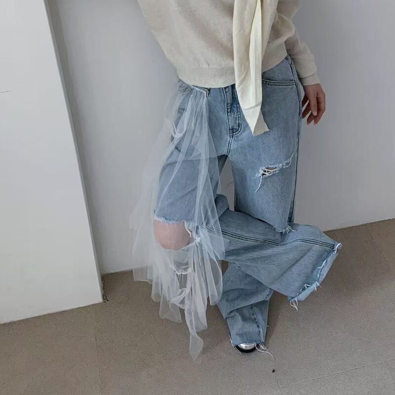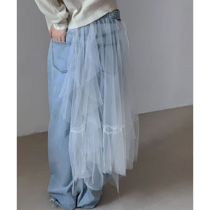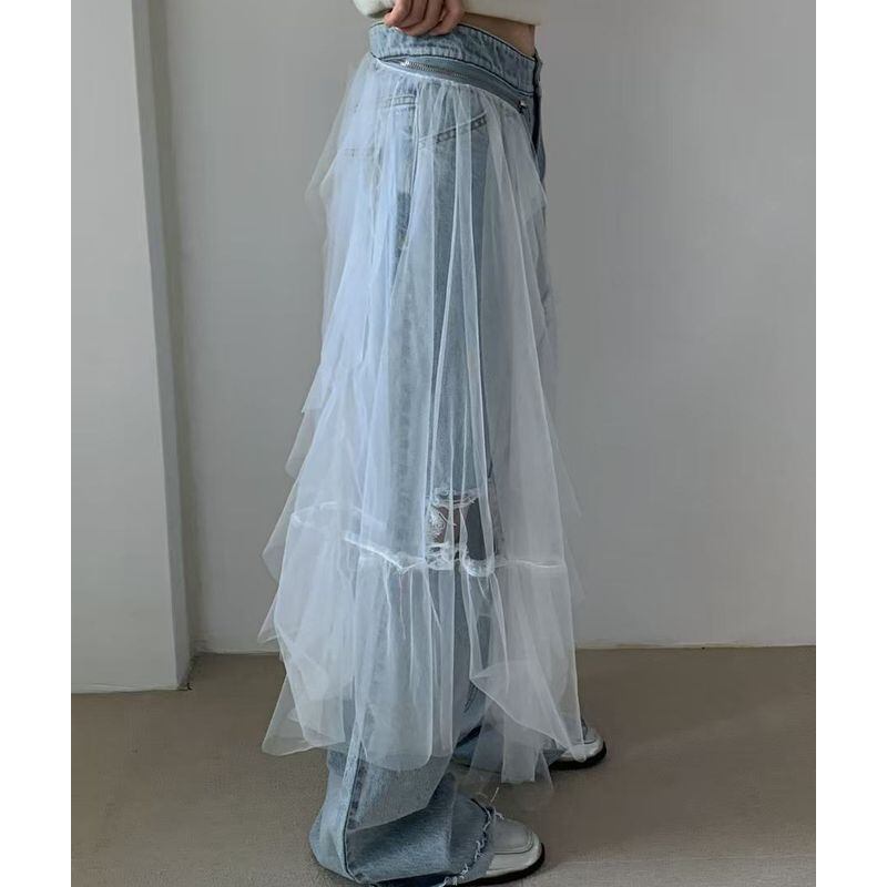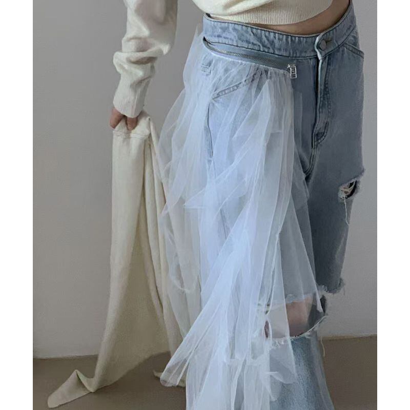 チュールダメージデニムパンツ 0125