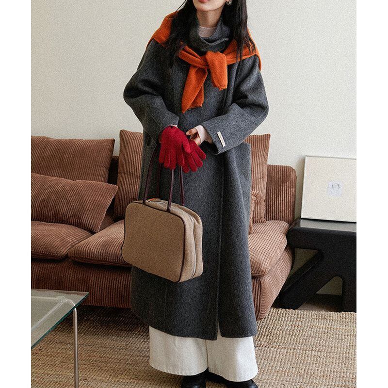 柔らかいニュアンスのでるスタンドカラーは開けても顔周りのポイントになります。シンプルなコートなので、Tシャツやニット、シャツなど、様々なアイテムと合わせることができます。カジュアルなデニムスタイルはもちろん、オフィスカジュアルとしても使えるため、幅広いシーンで活躍。