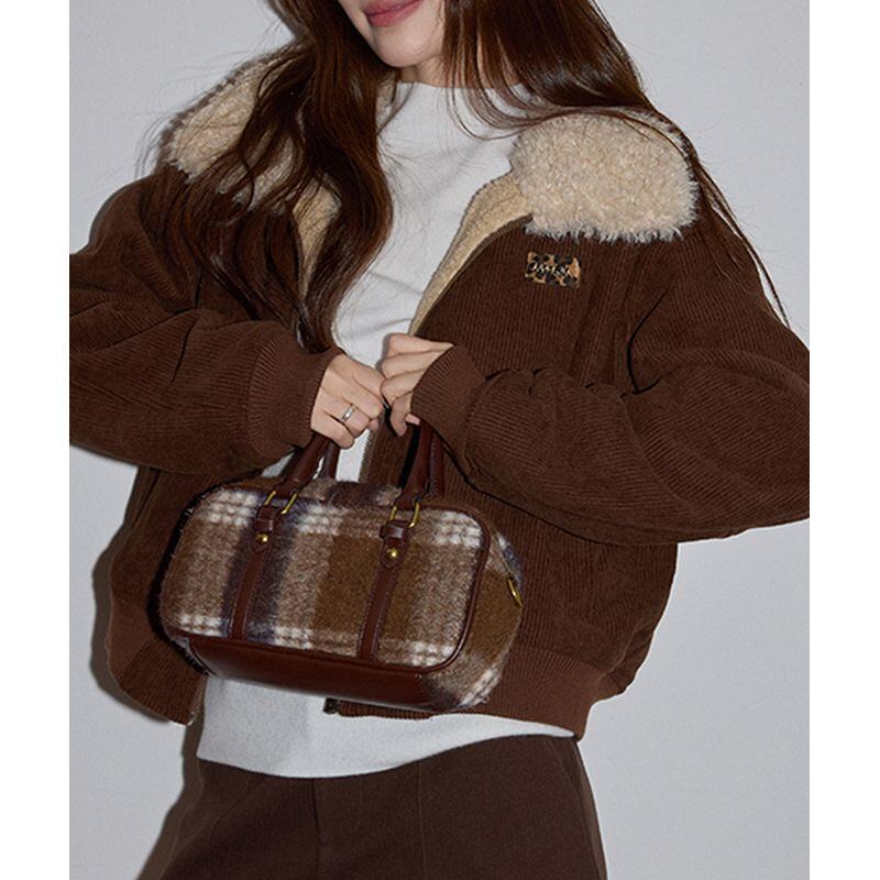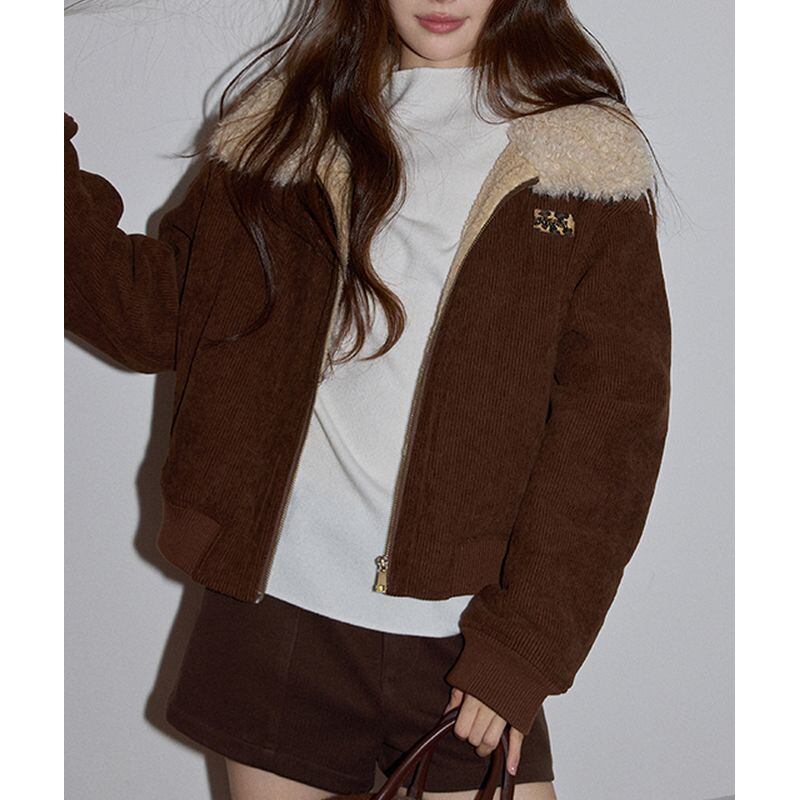 襟元のファーがアクセントになり、レトロな雰囲気を演出します。