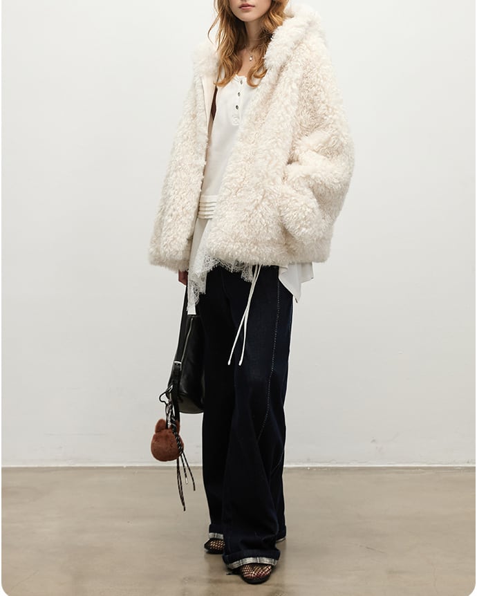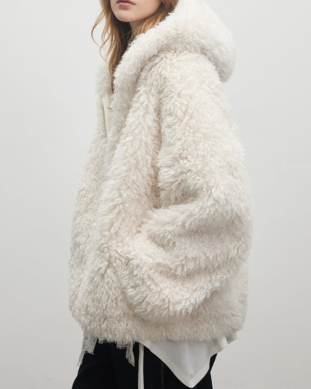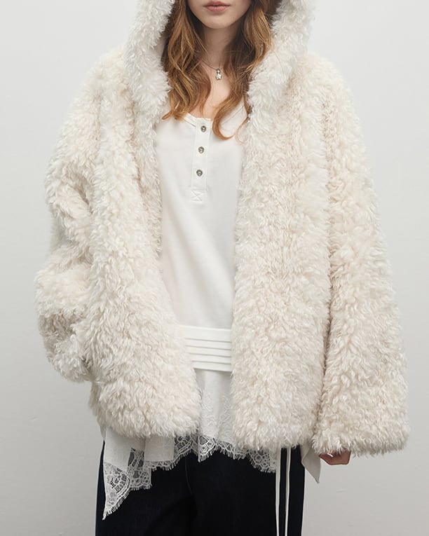 フェイクファーフーディコート 0178