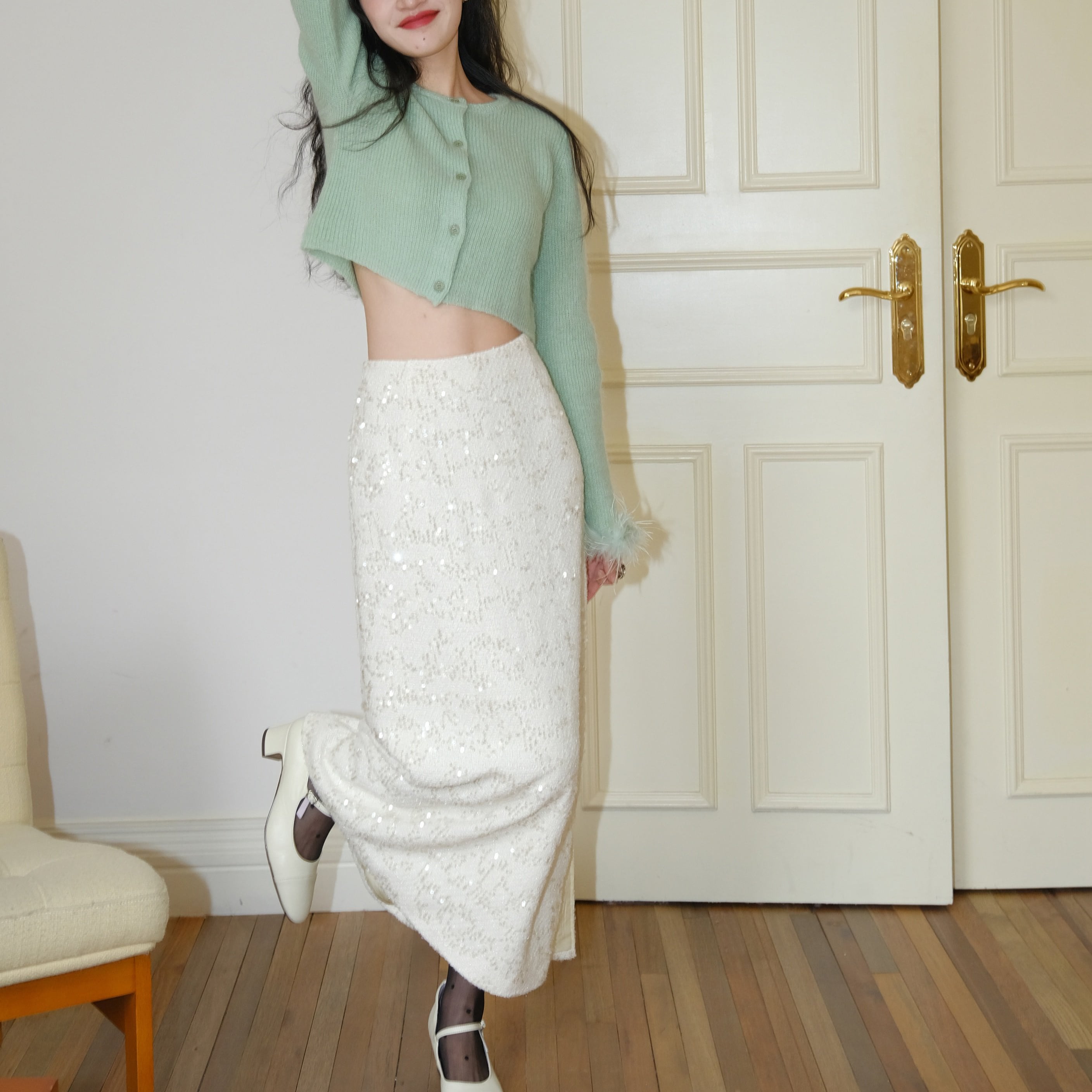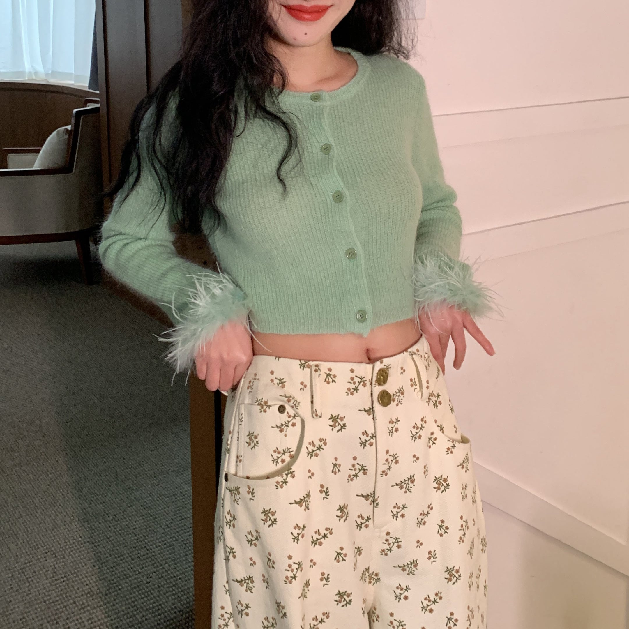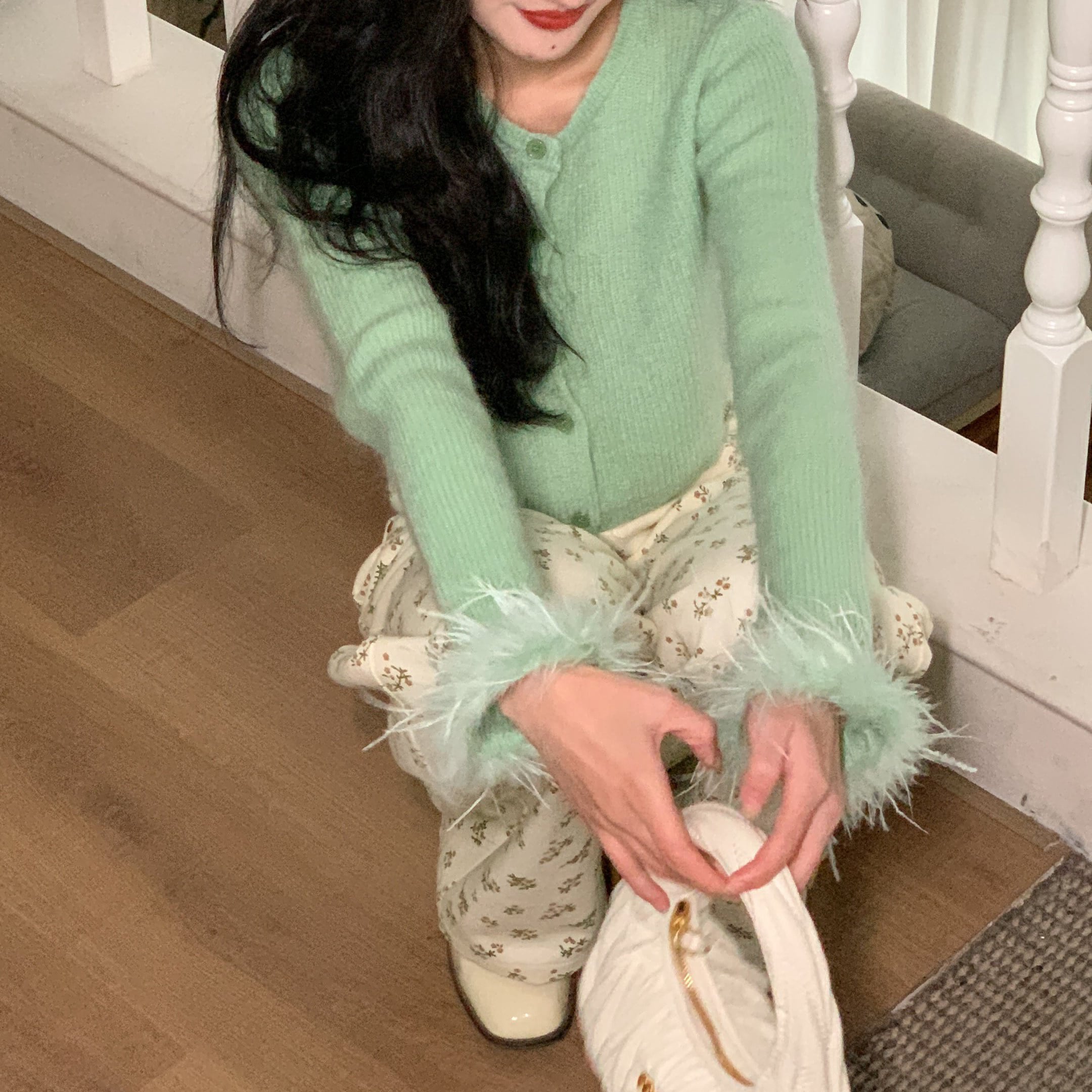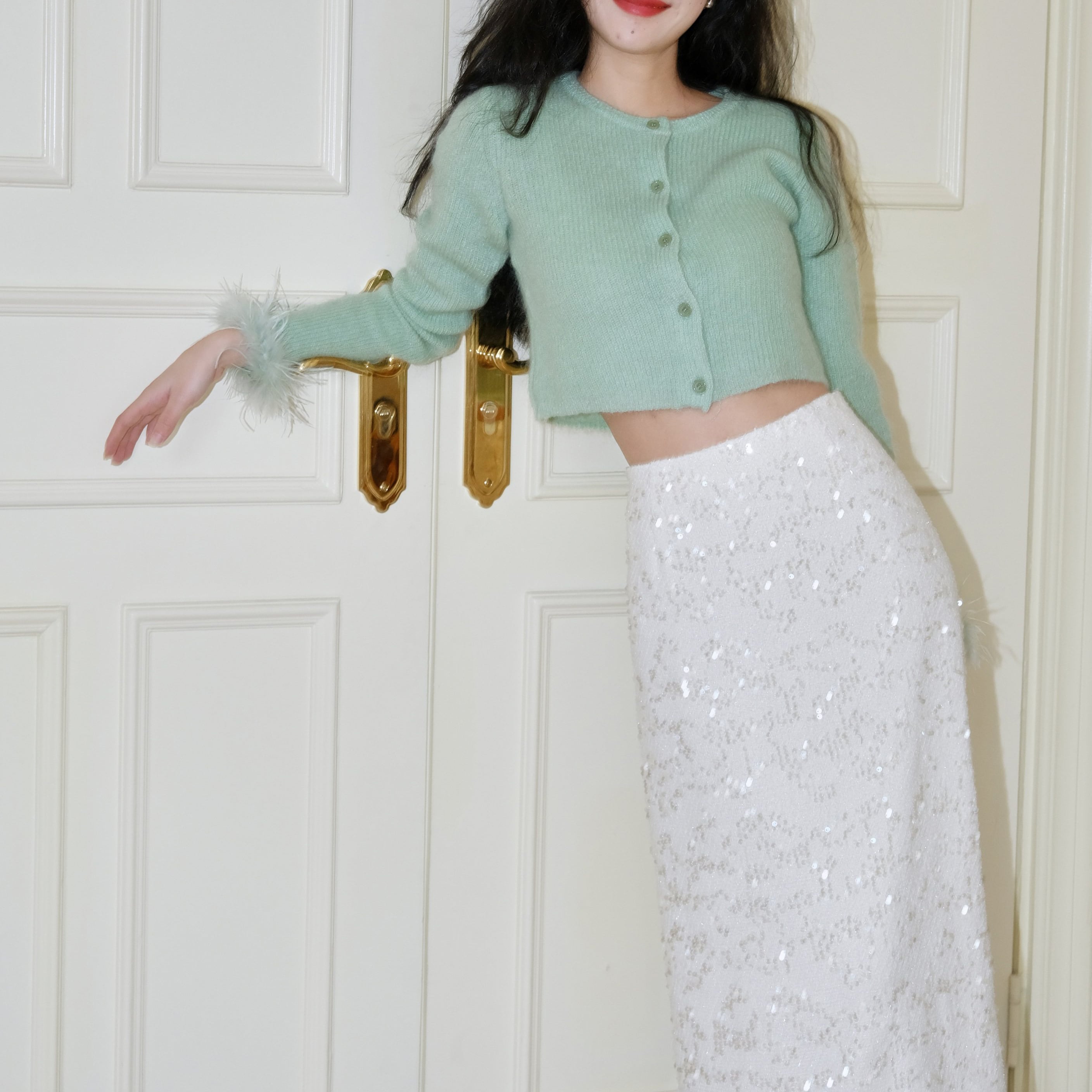 袖口のフェザーが華やかで、シンプルなコーデに合わせるだけで主役になれるデザインです◎