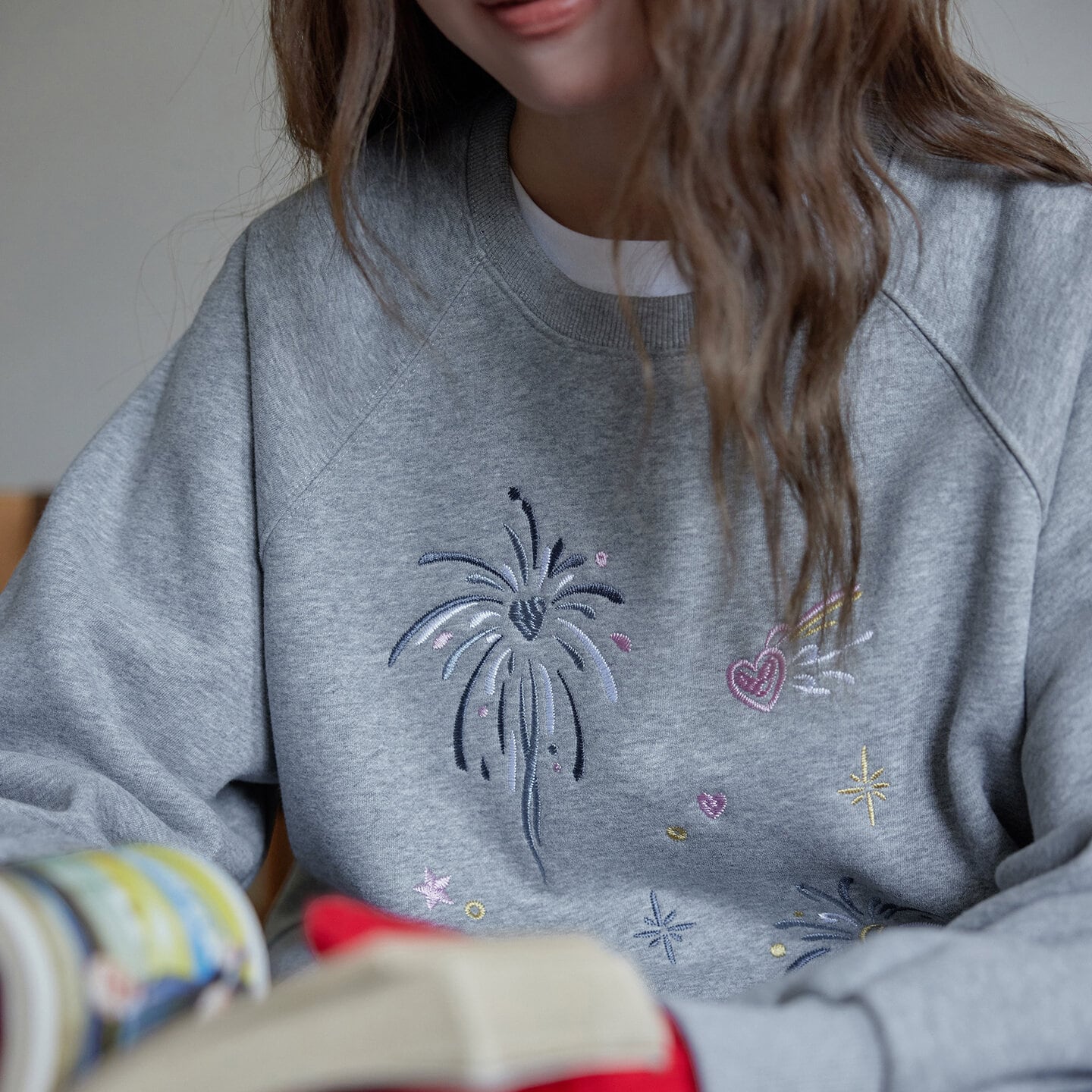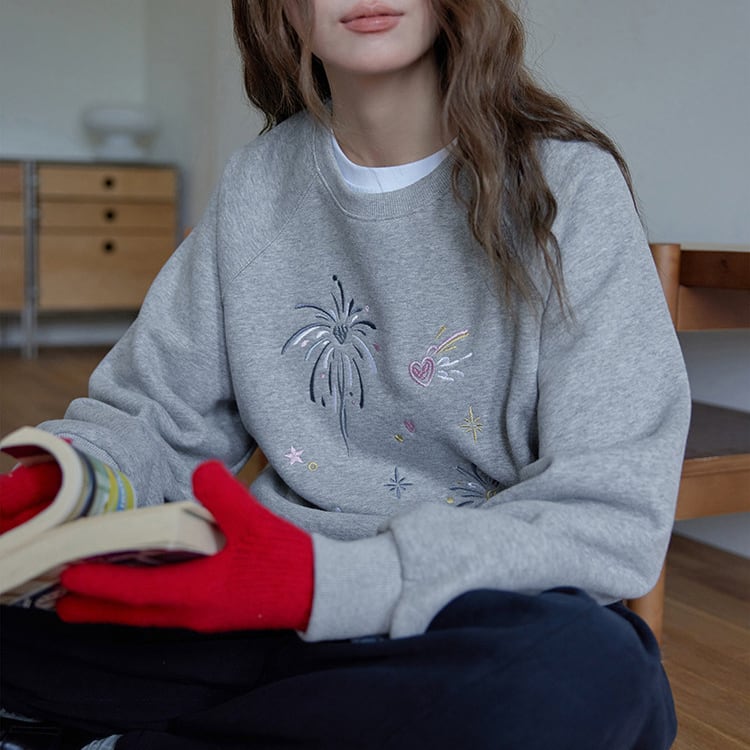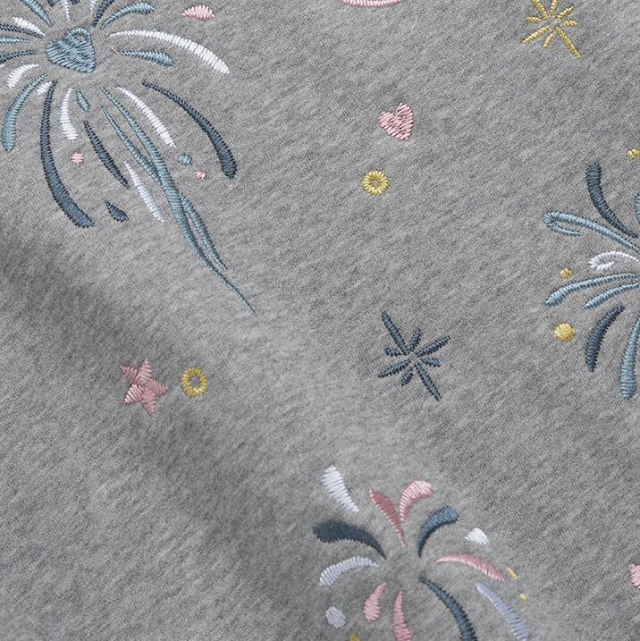 中央の花火の刺繍がアクセントになり、普段の着こなしをワンランクアップさせてくれます。