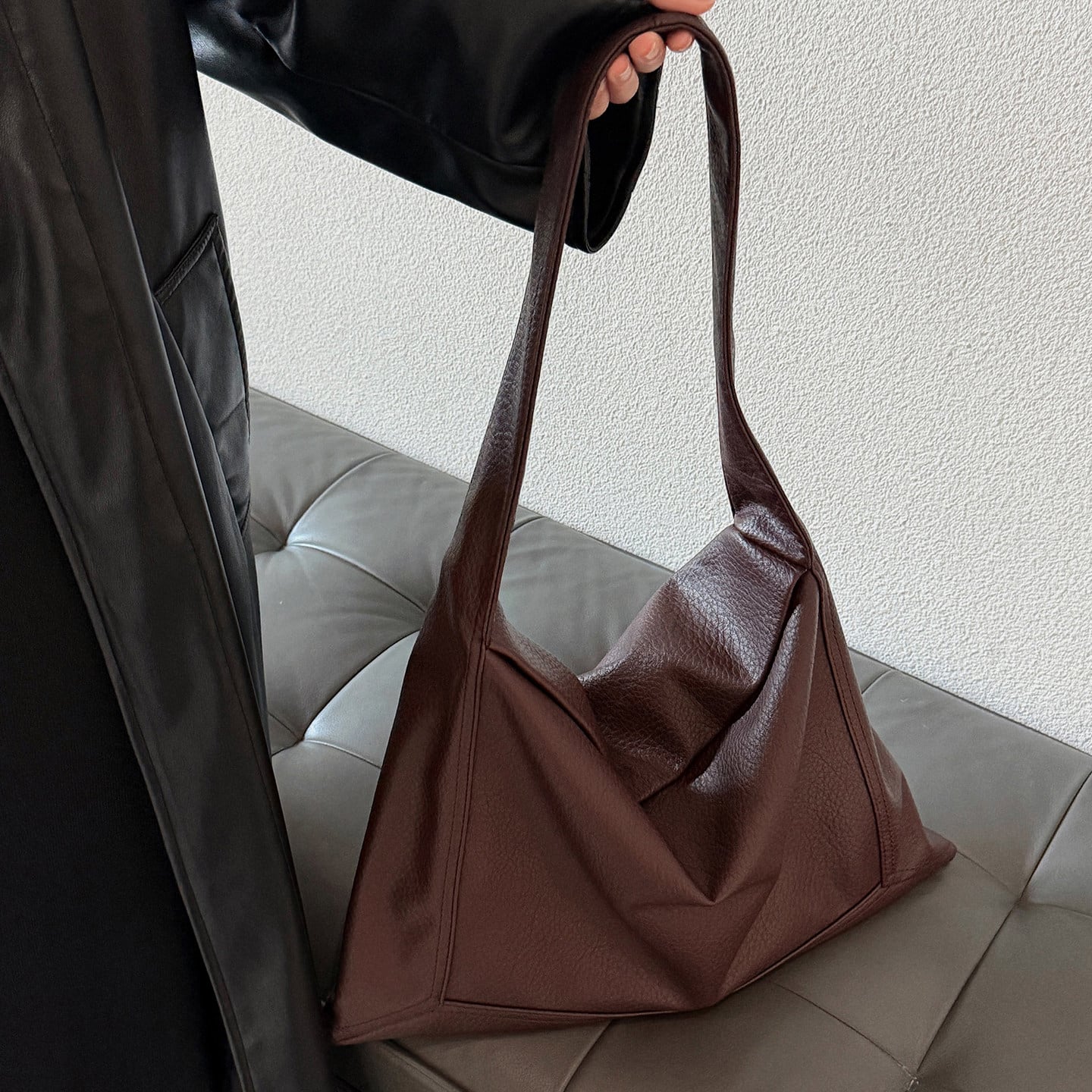 どんなコーディネートにも合わせやすいワンショルダーバッグ。