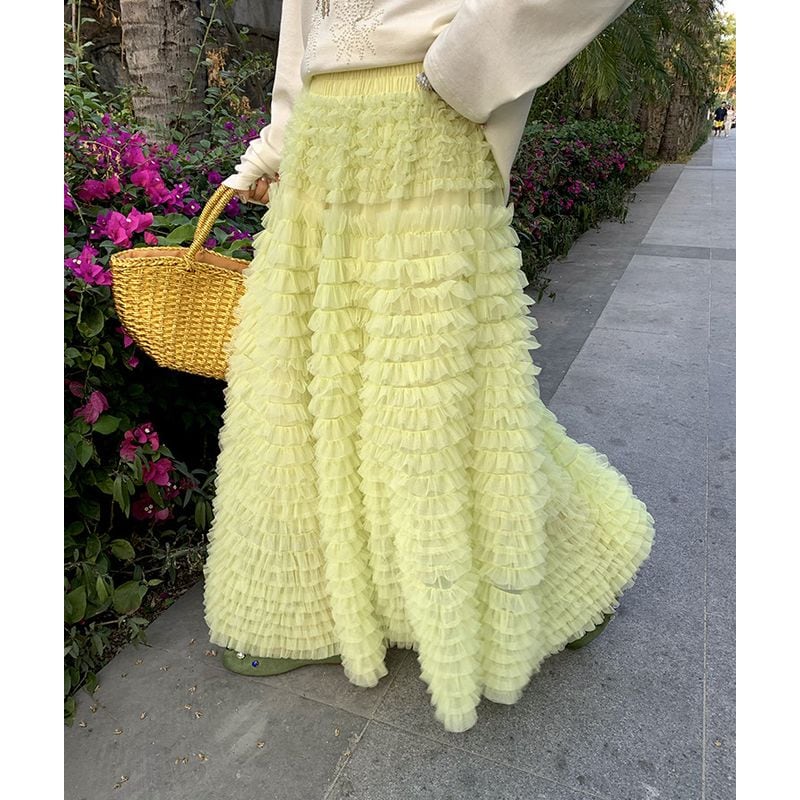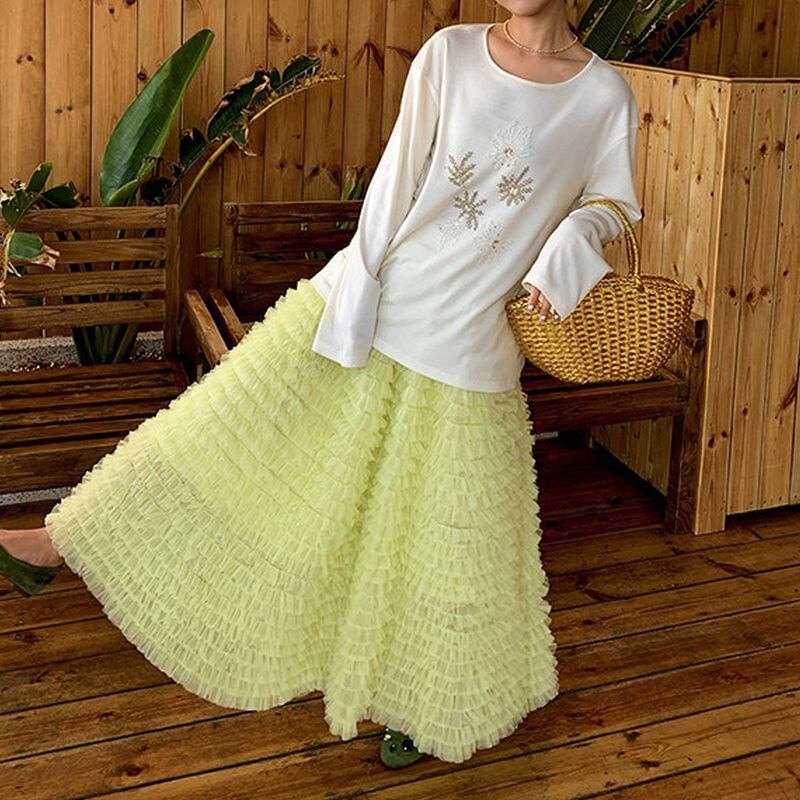 ふんわり軽やか。1枚で主役になれるティアードスカート。