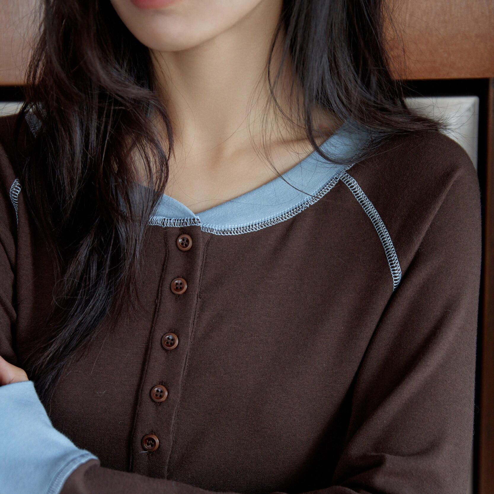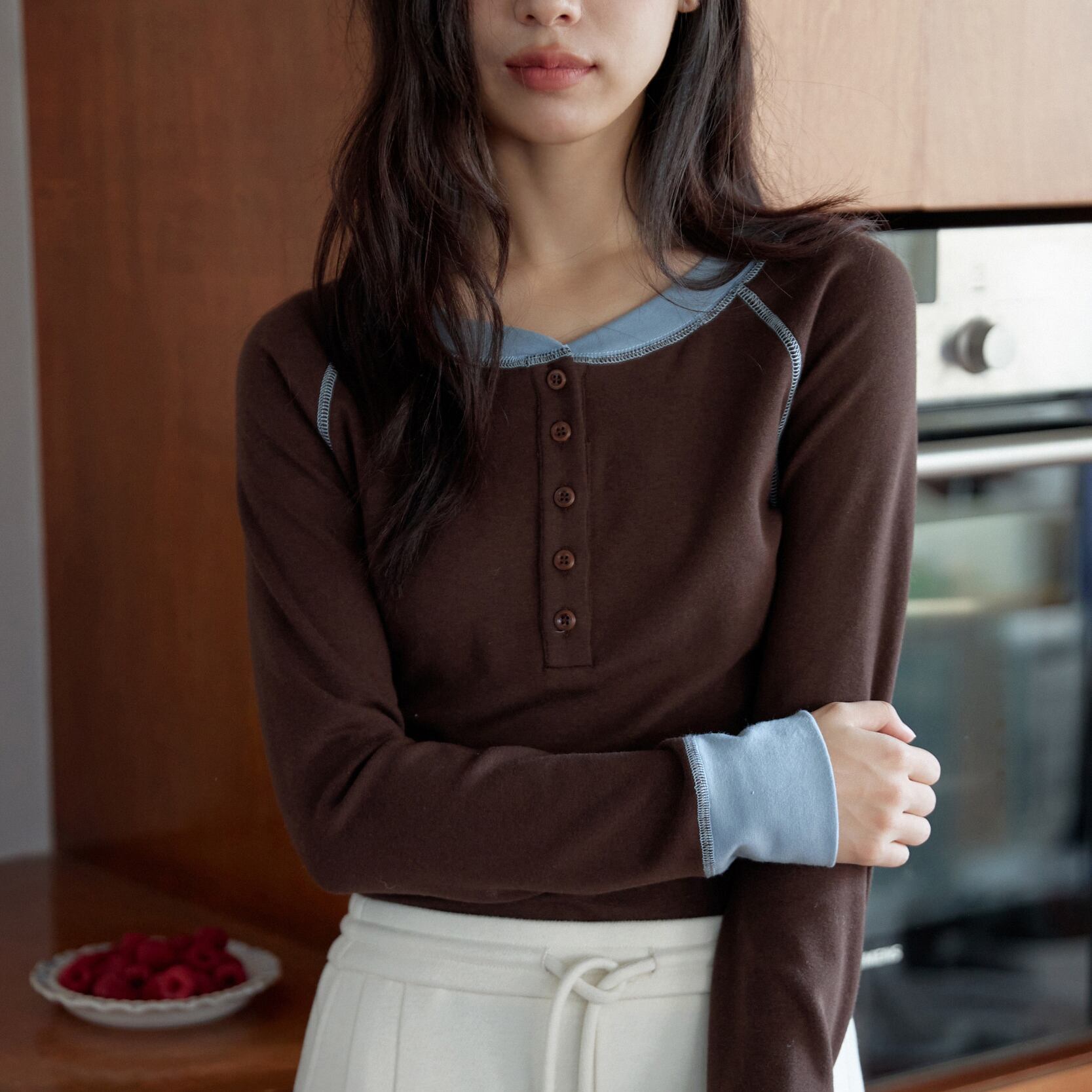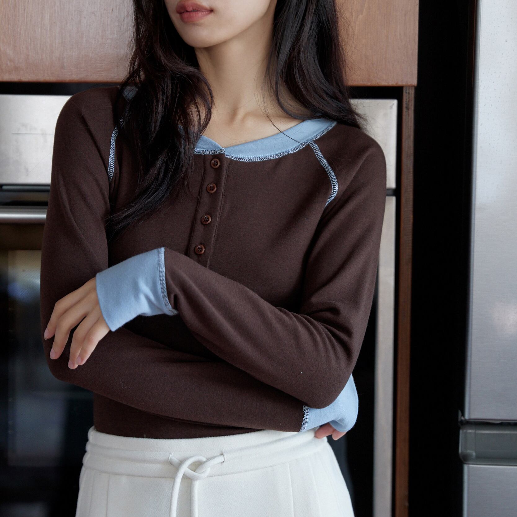 バイカラーデザインヘンリーカットソー 0209