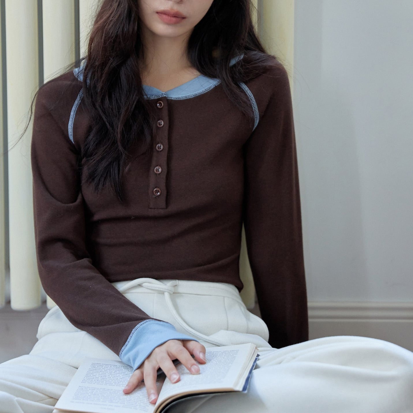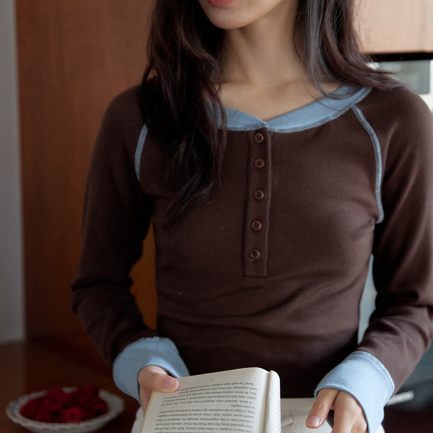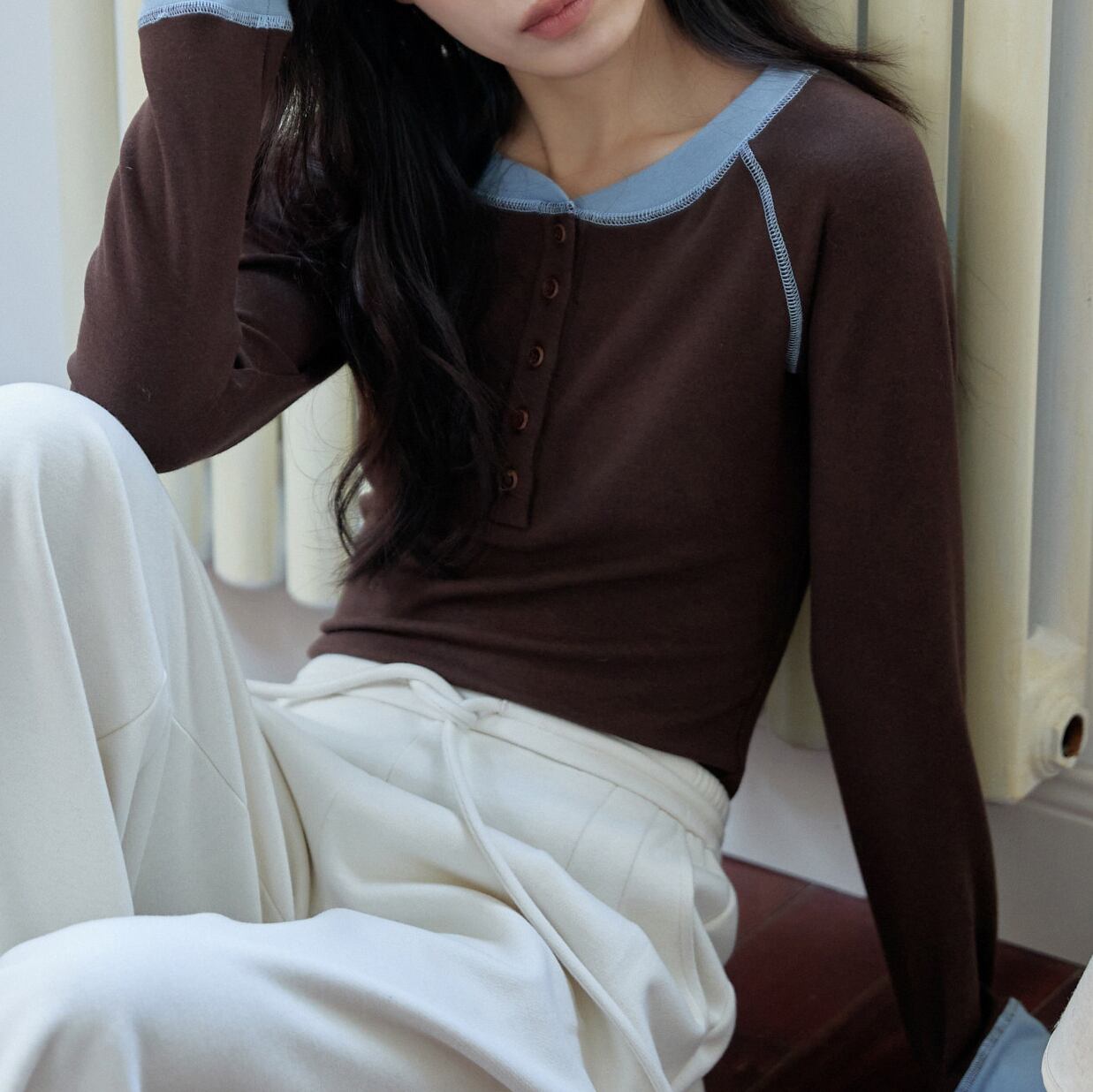 バイカラーデザインヘンリーカットソー 0209