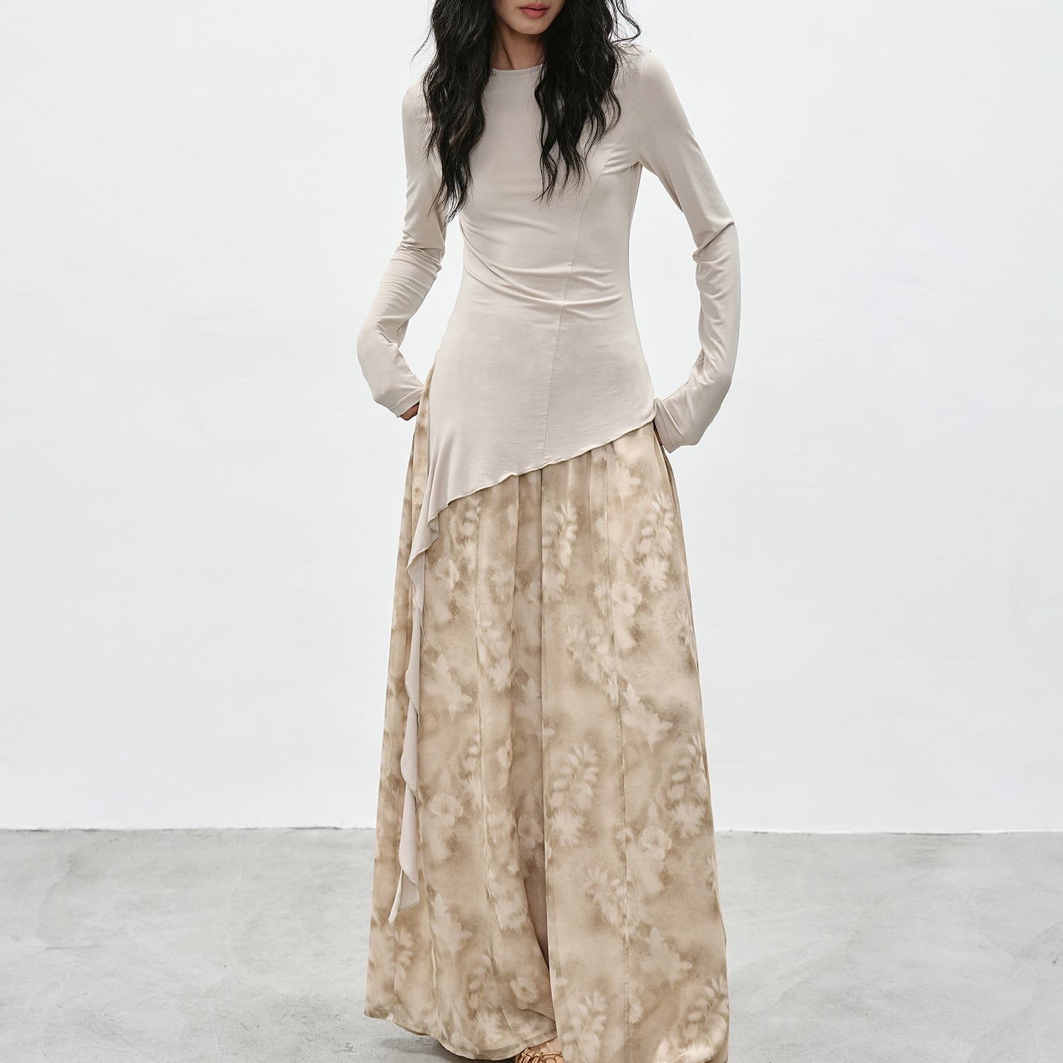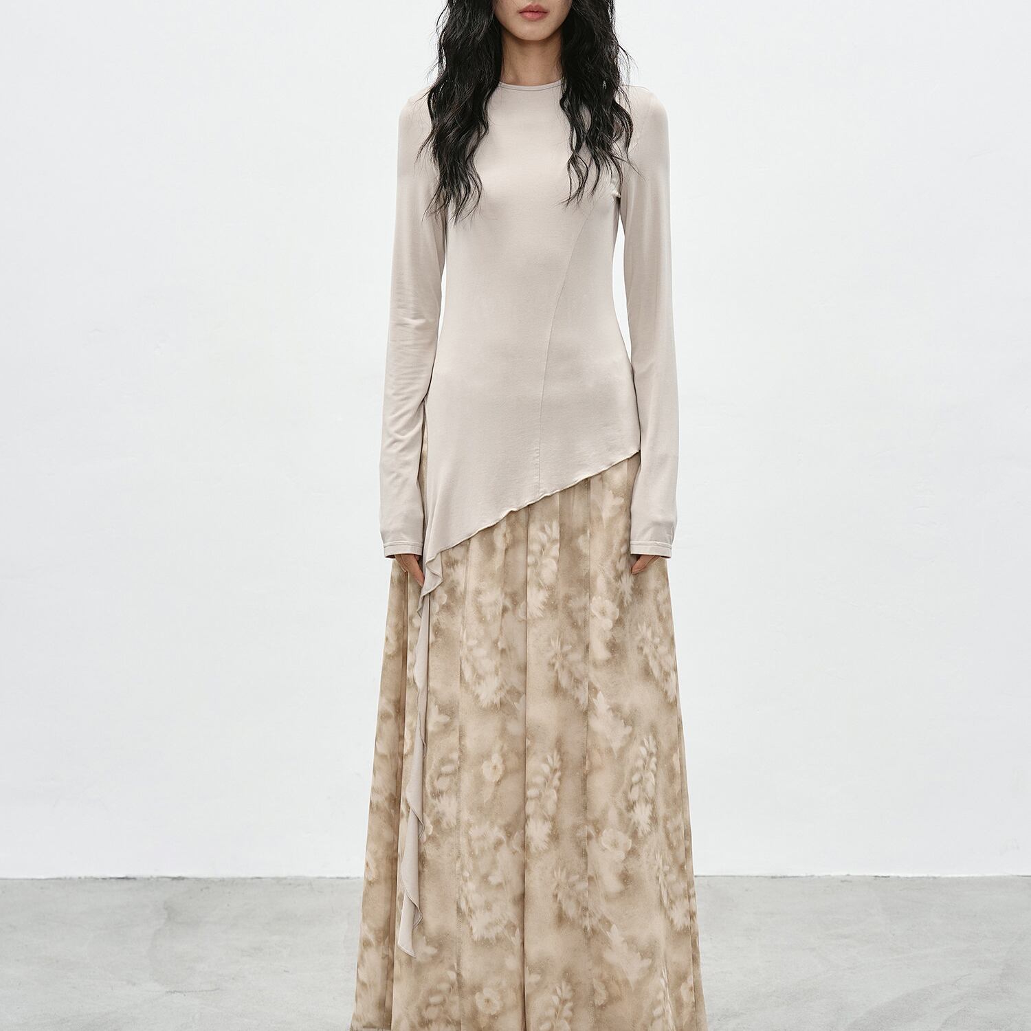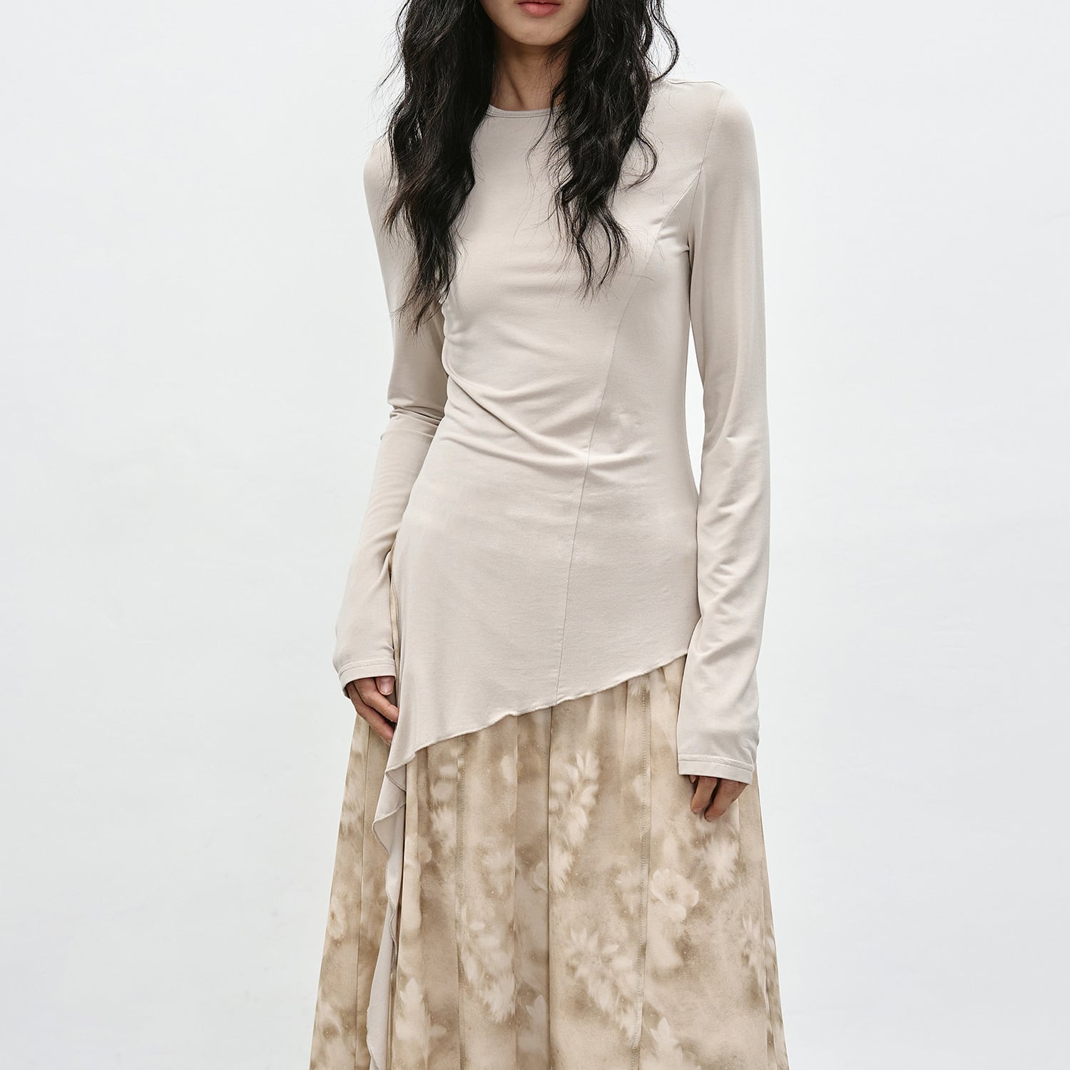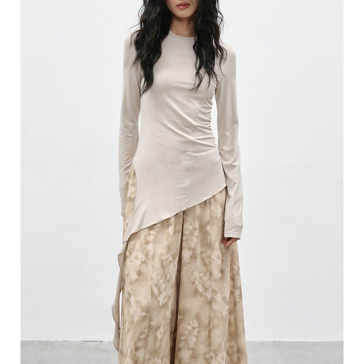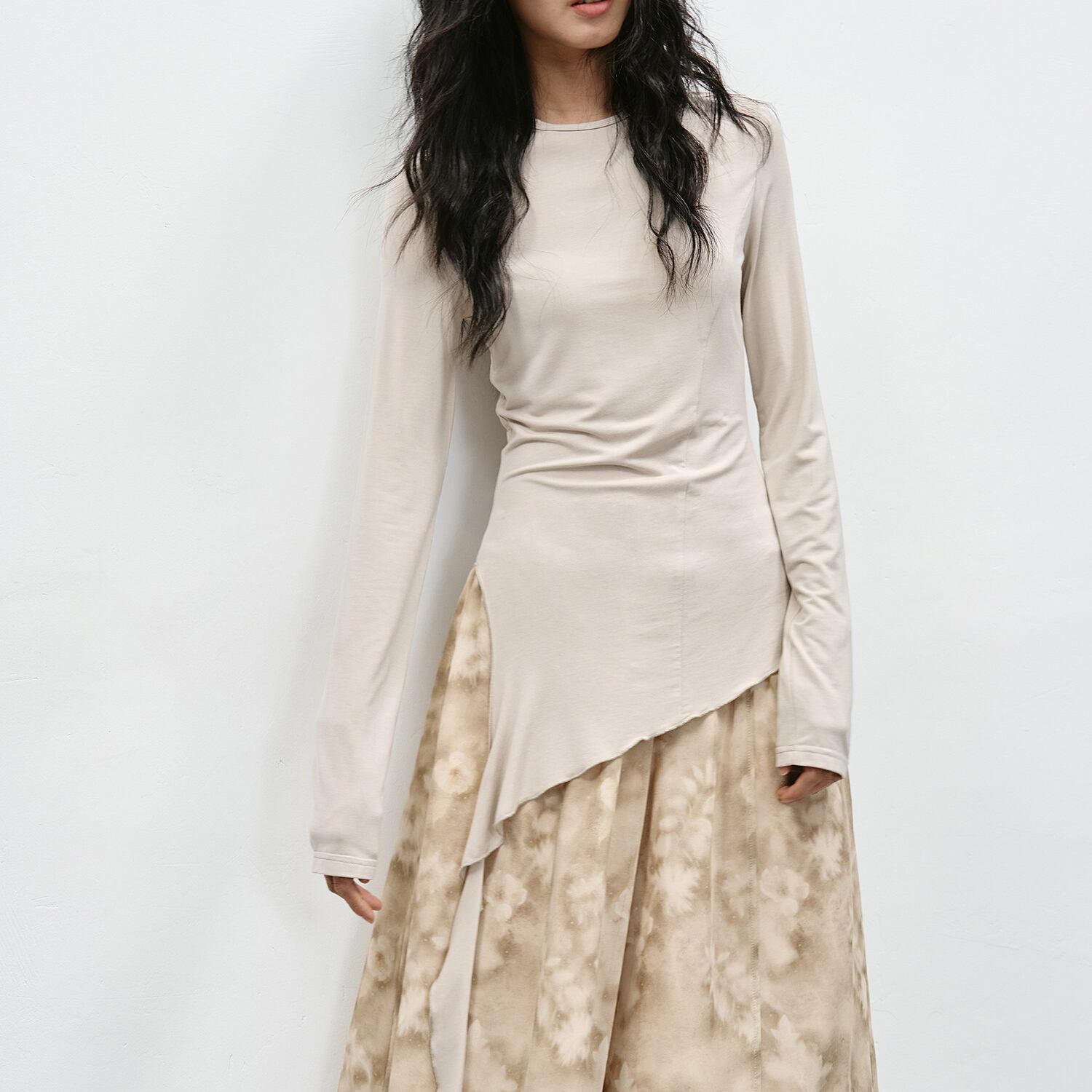 アシンメトリーな裾が特徴的なカットソー。