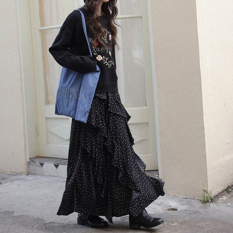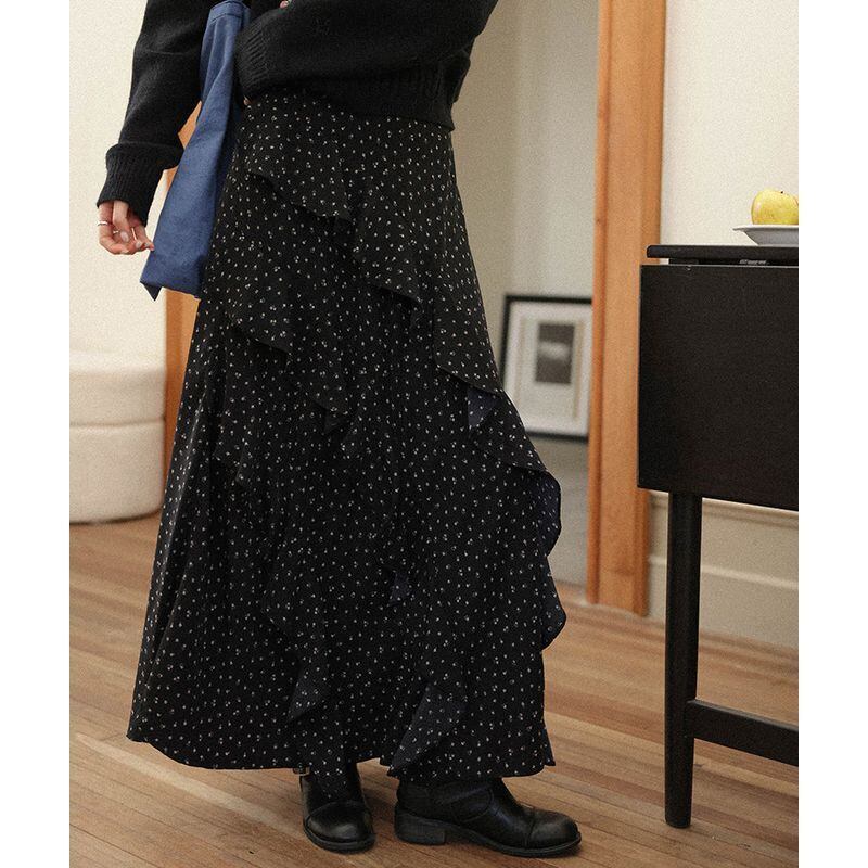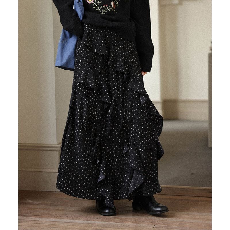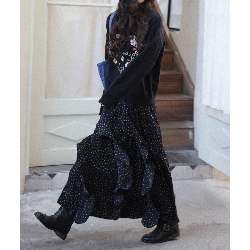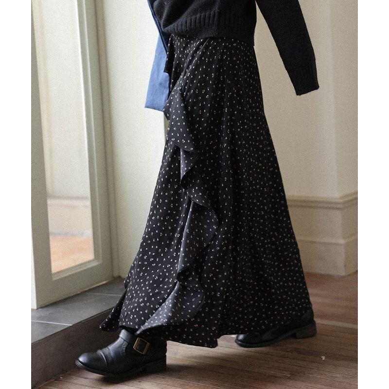 歩くたびに揺れるラッフルがエレガントな雰囲気を演出。