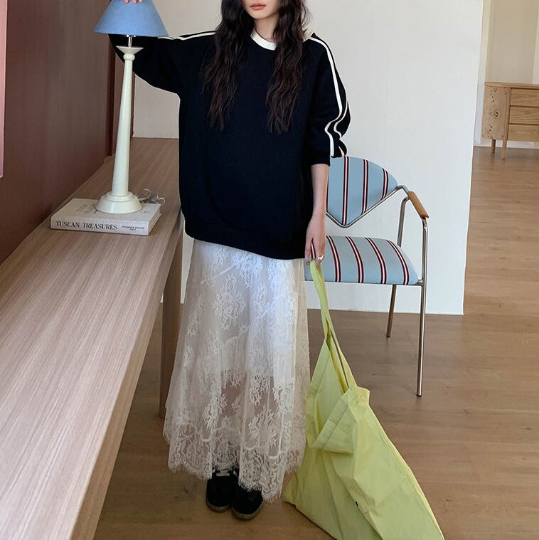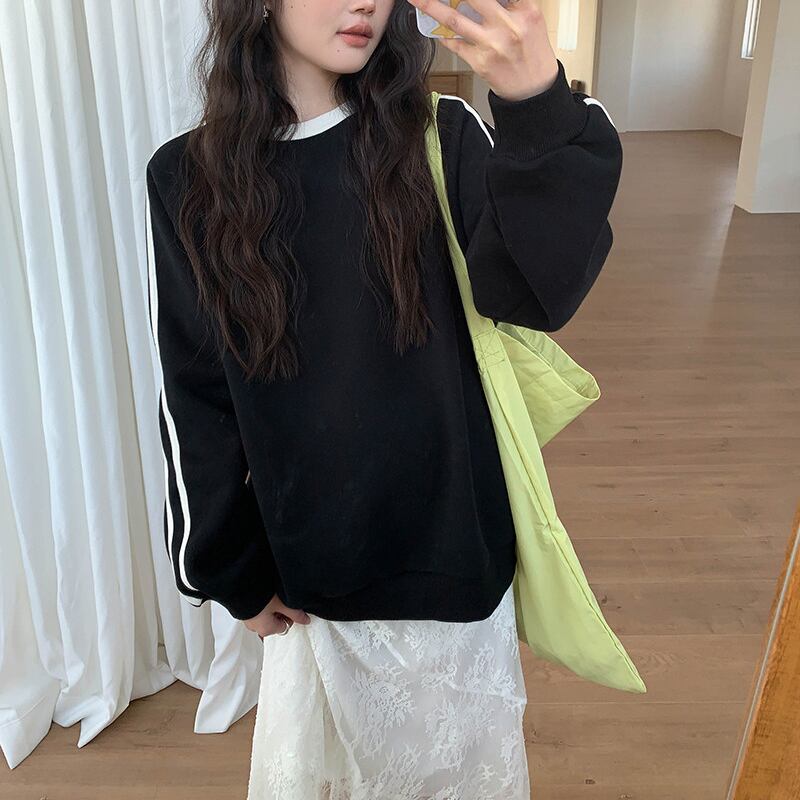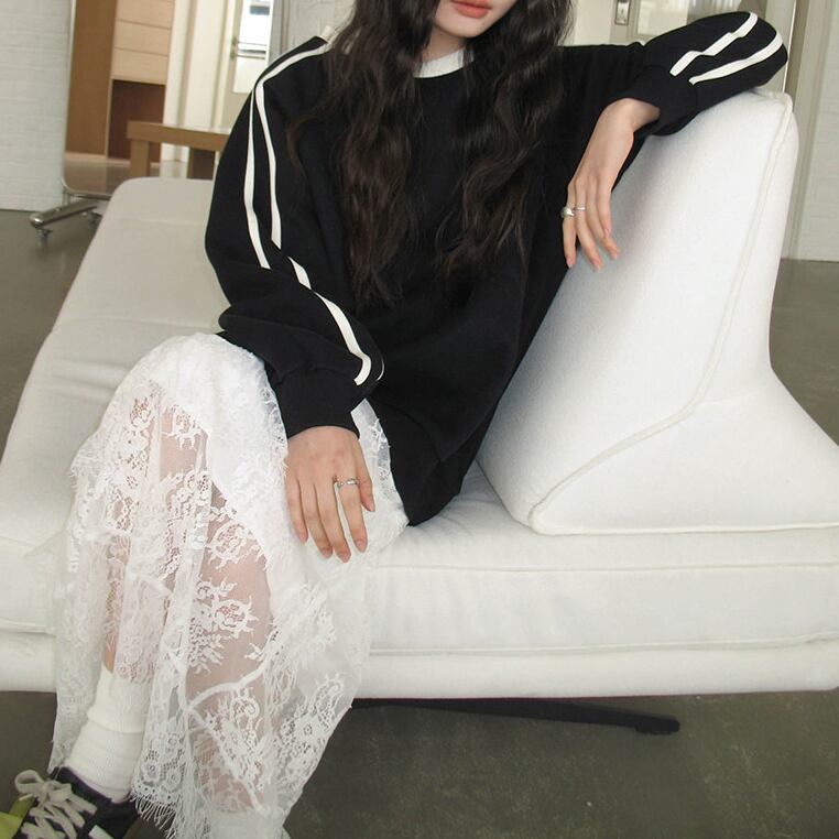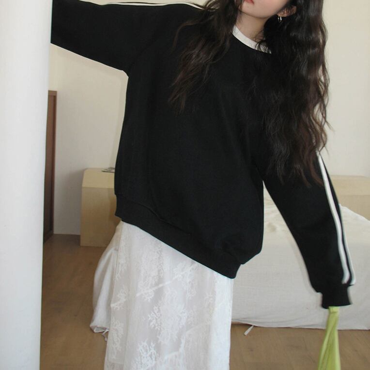 ゆったりとしたシルエットでリラックス感のあるスウェット。サイドラインがスポーティーなアクセントになり、カジュアルながらも洗練された印象を与えます。ワンピースやスカートと合わせたMIXスタイルや、パンツと合わせた定番カジュアルスタイルにもおすすめです。