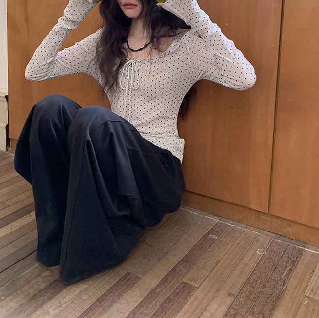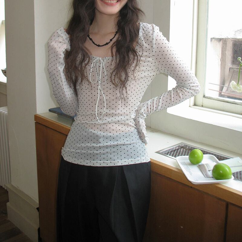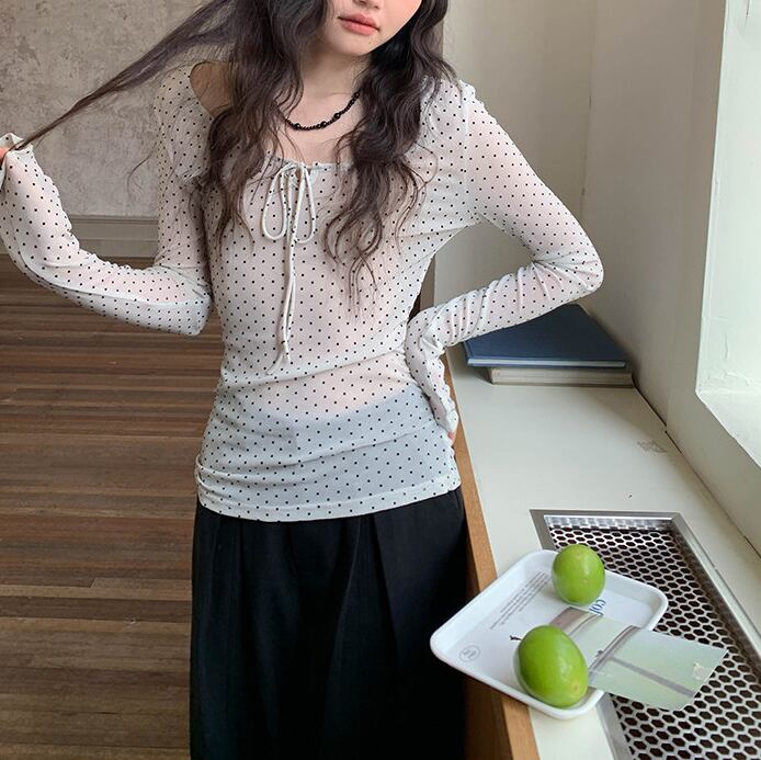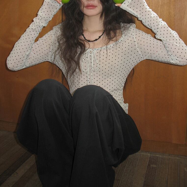 レトロな雰囲気をまとうドット柄カットソー。