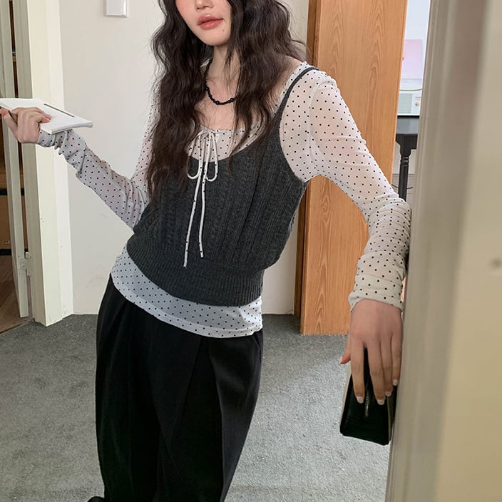 胸元のリボンがアクセントになり、一枚でトレンド感のある着こなしが完成します。