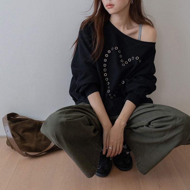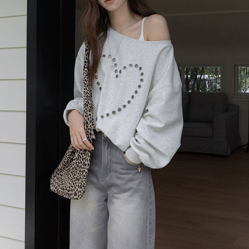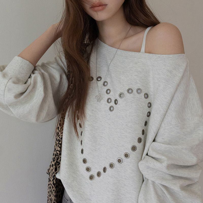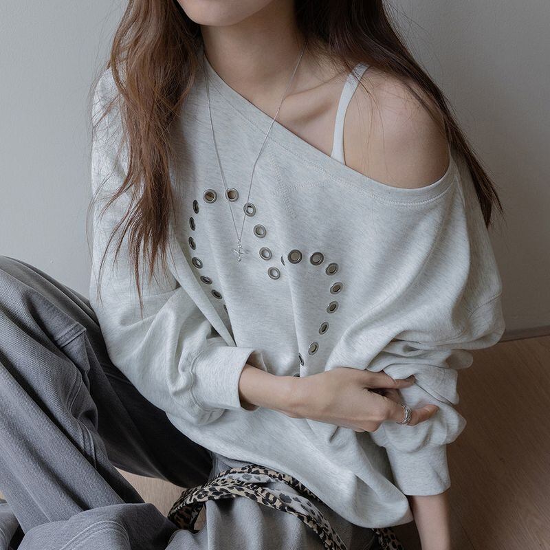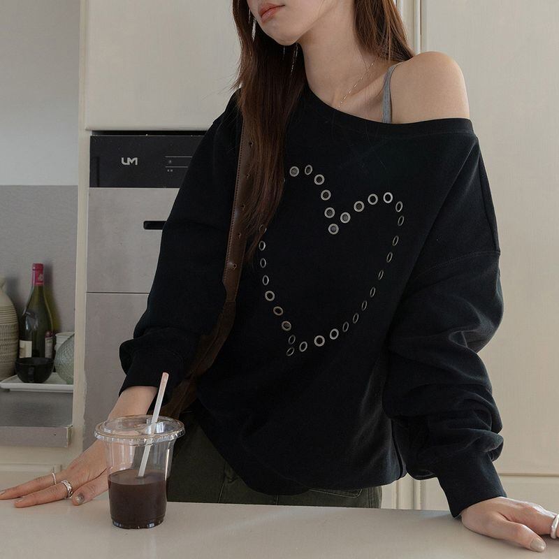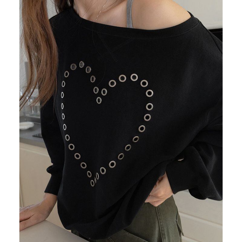オフショルダーハートスタッズスウェット 0234