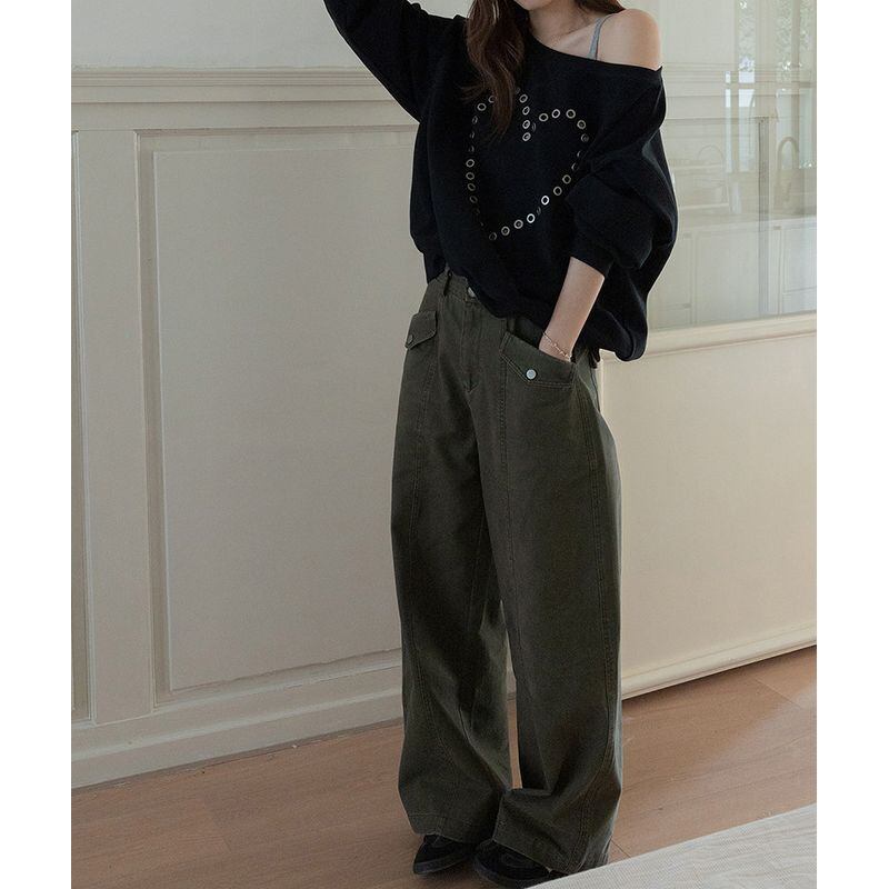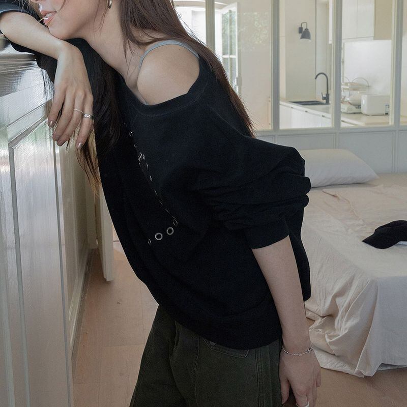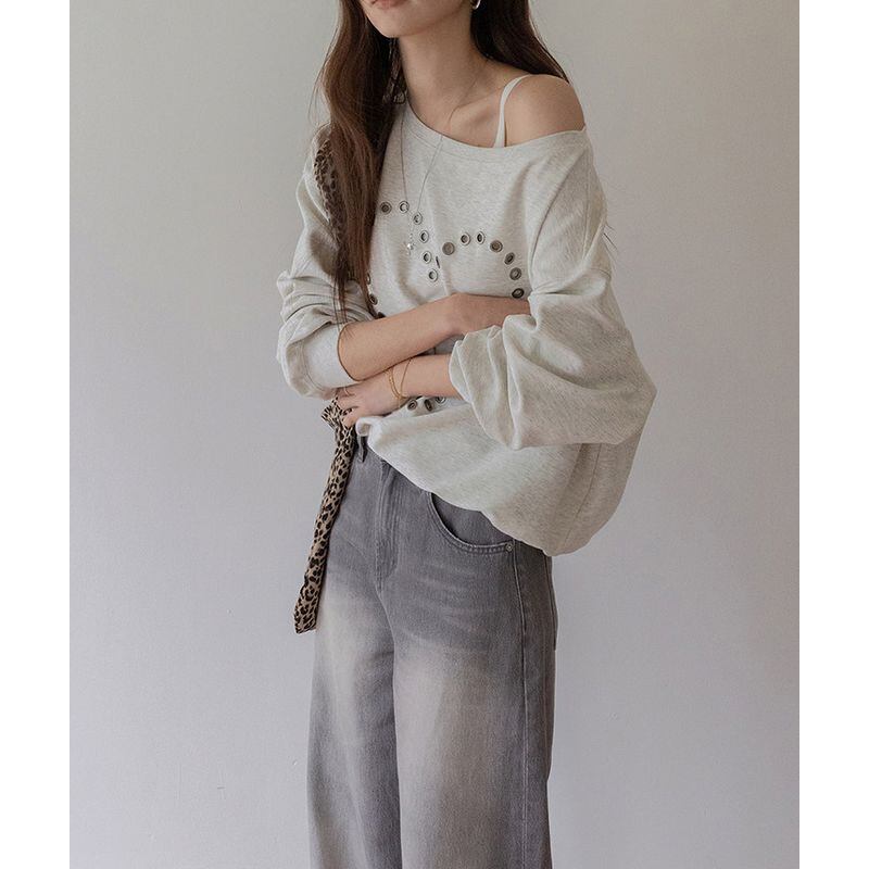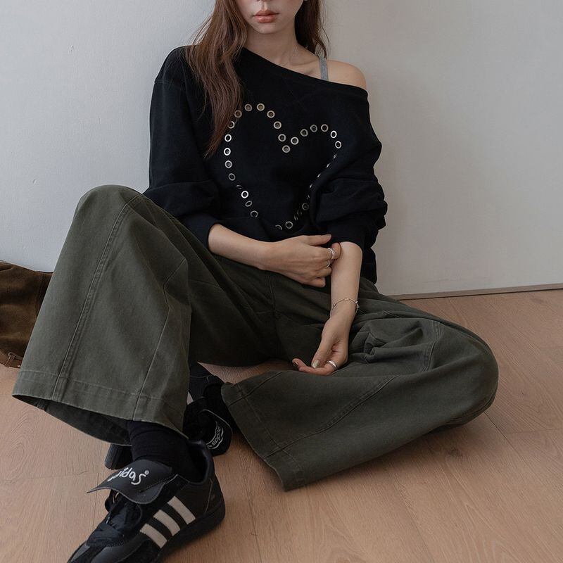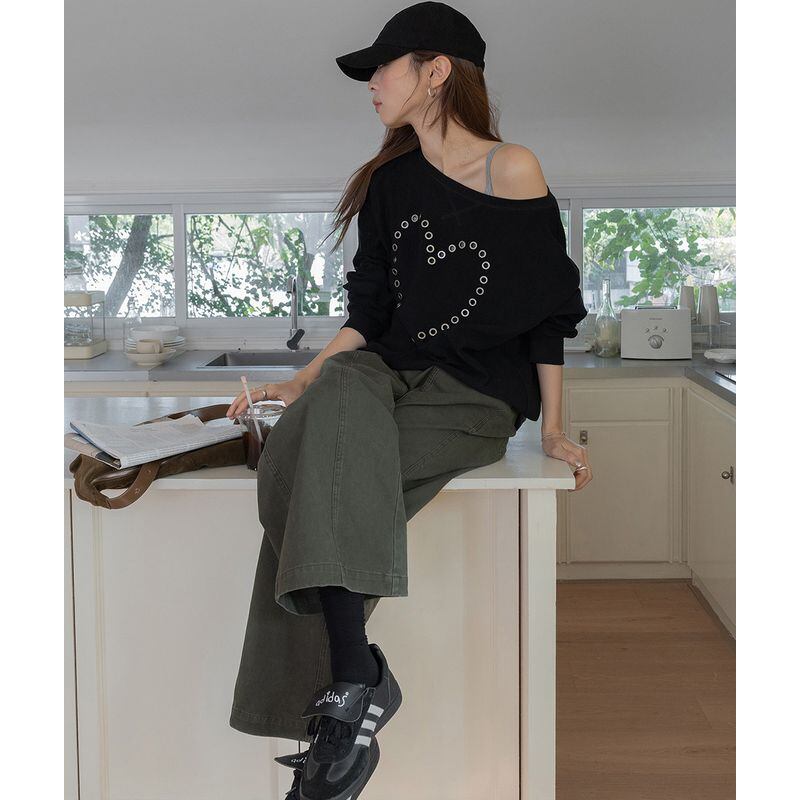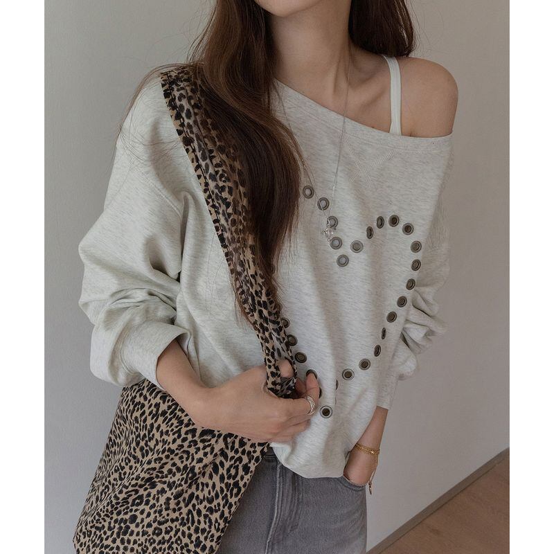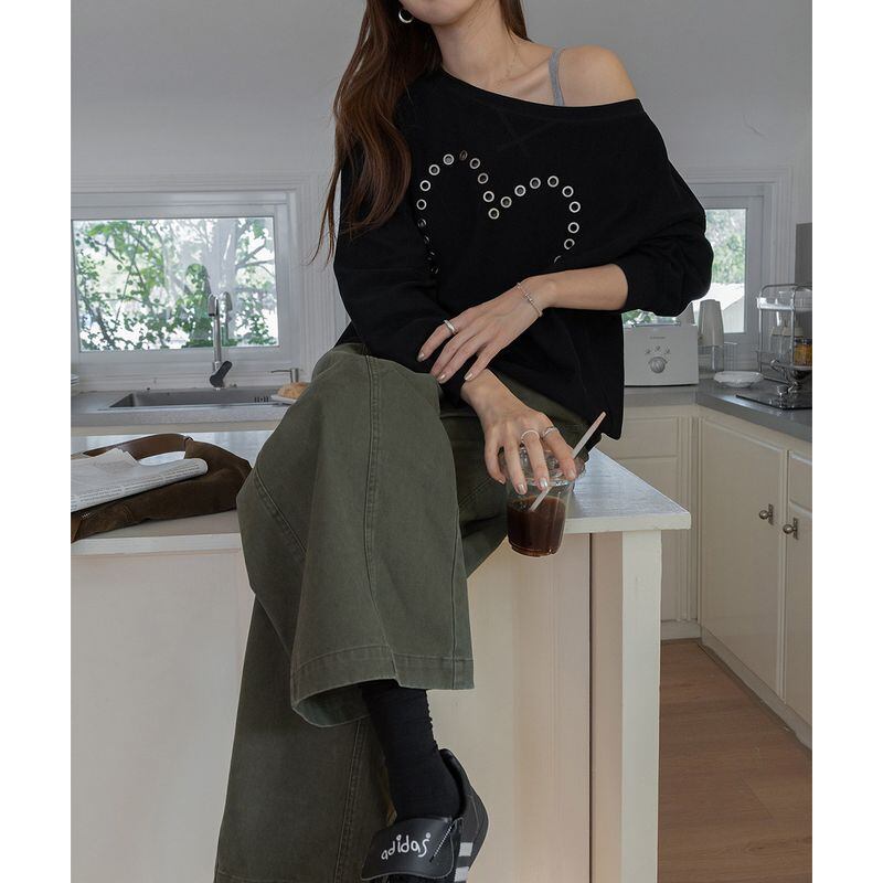 オフショルダーハートスタッズスウェット 0234