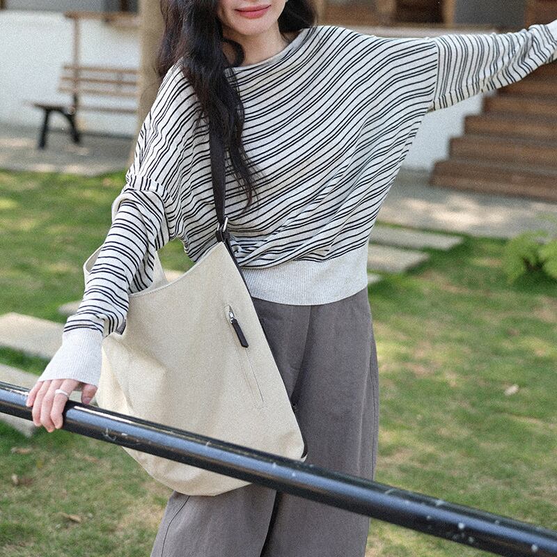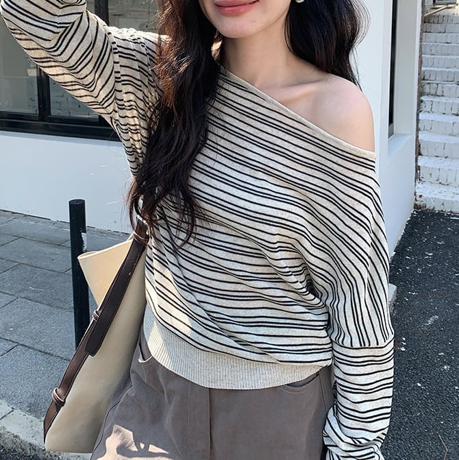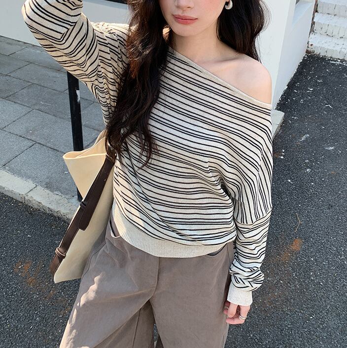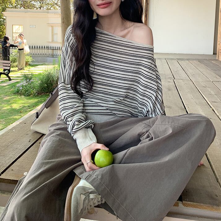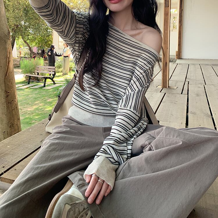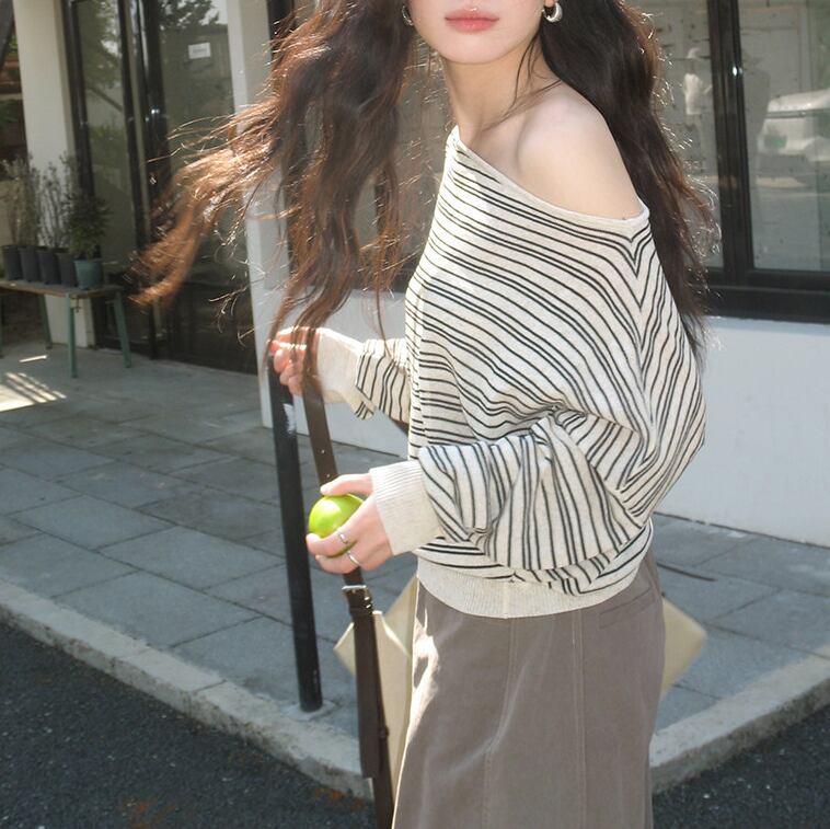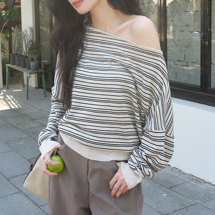 少し肩を落として着れば、オフショルダーとしても楽しめます。