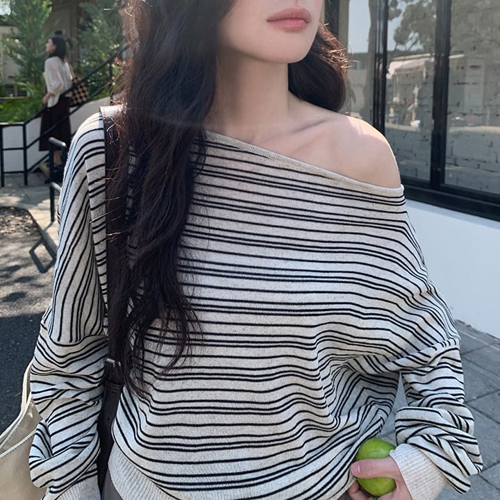 ゆったり着こなせるボーダー柄ニット。