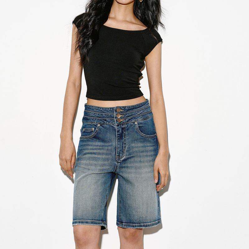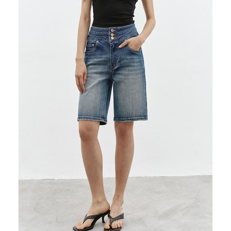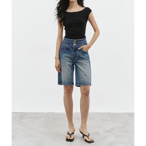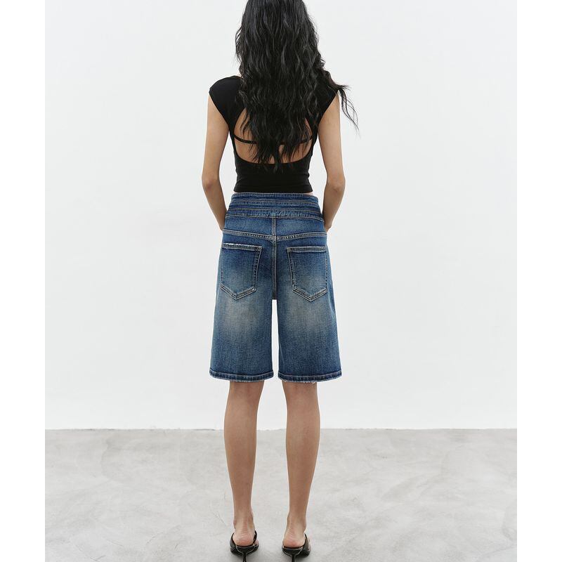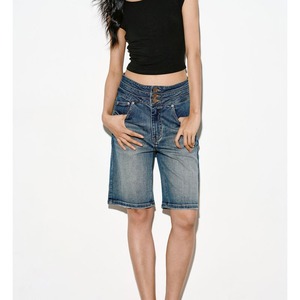 トリプルウエストハーフデニムパンツ 0244