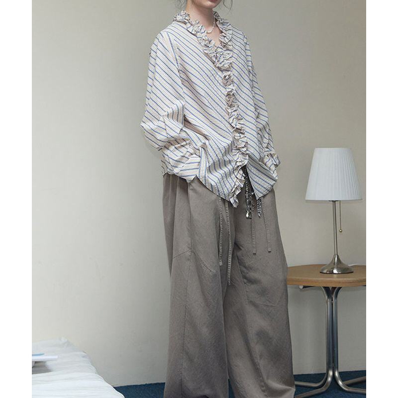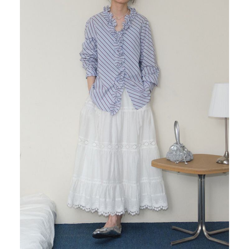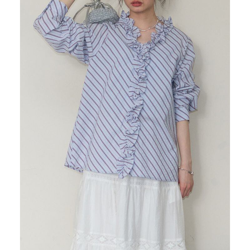 胸元のフリルが華やかさをプラスし、コーデの主役になるデザインです。